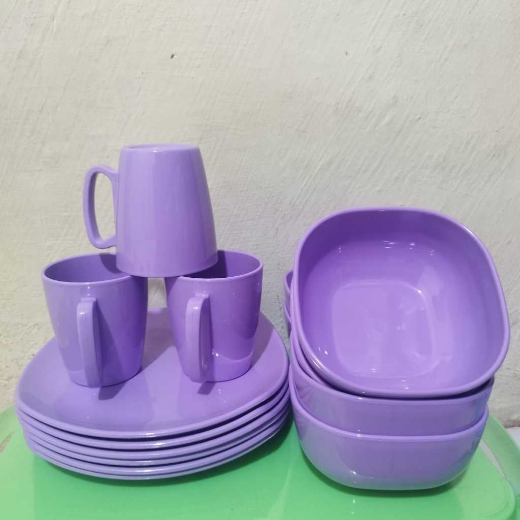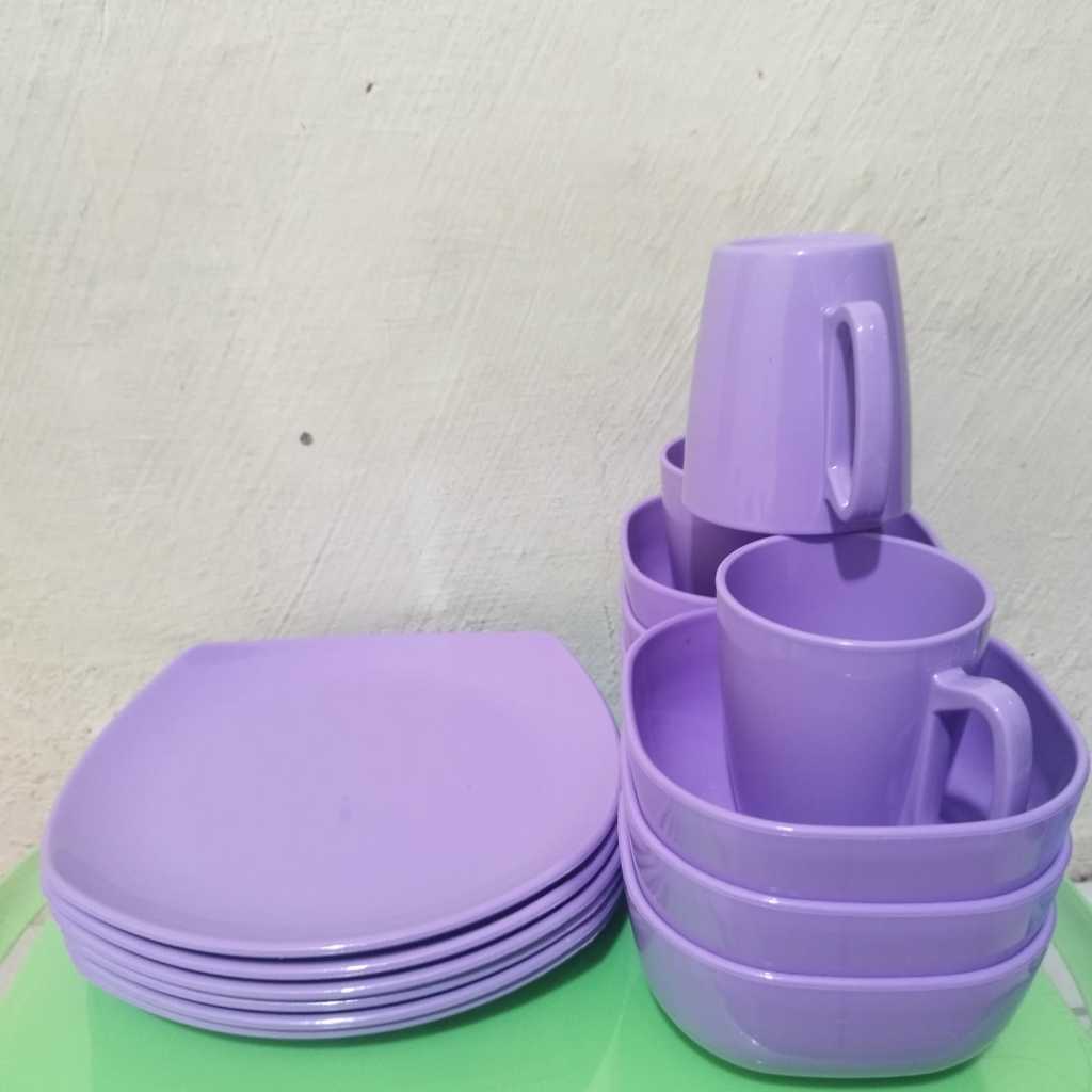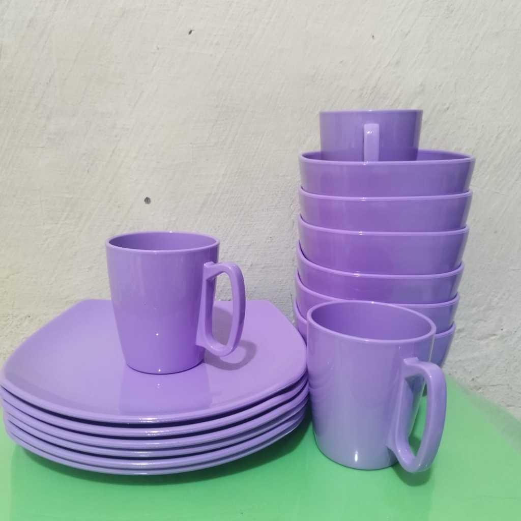 6 pcs/ 1 lusin set piring ,mangkuk dan gelas melamin dinnerware