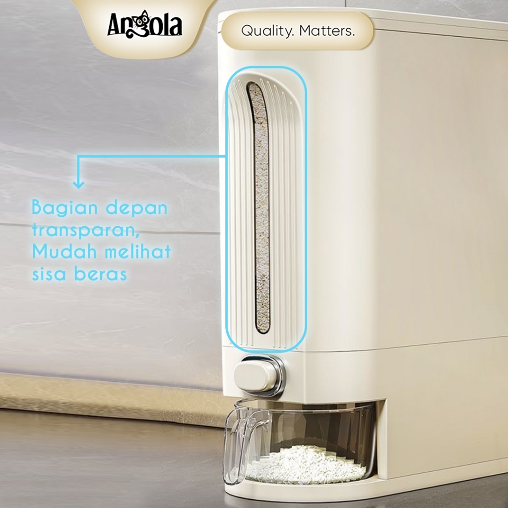 ANGOLA Dispenser Beras Otomasi Anti Kutu 10KG E18 Tempat Beras GRATIS Mangkok Cuci Beras/Rice Bucket