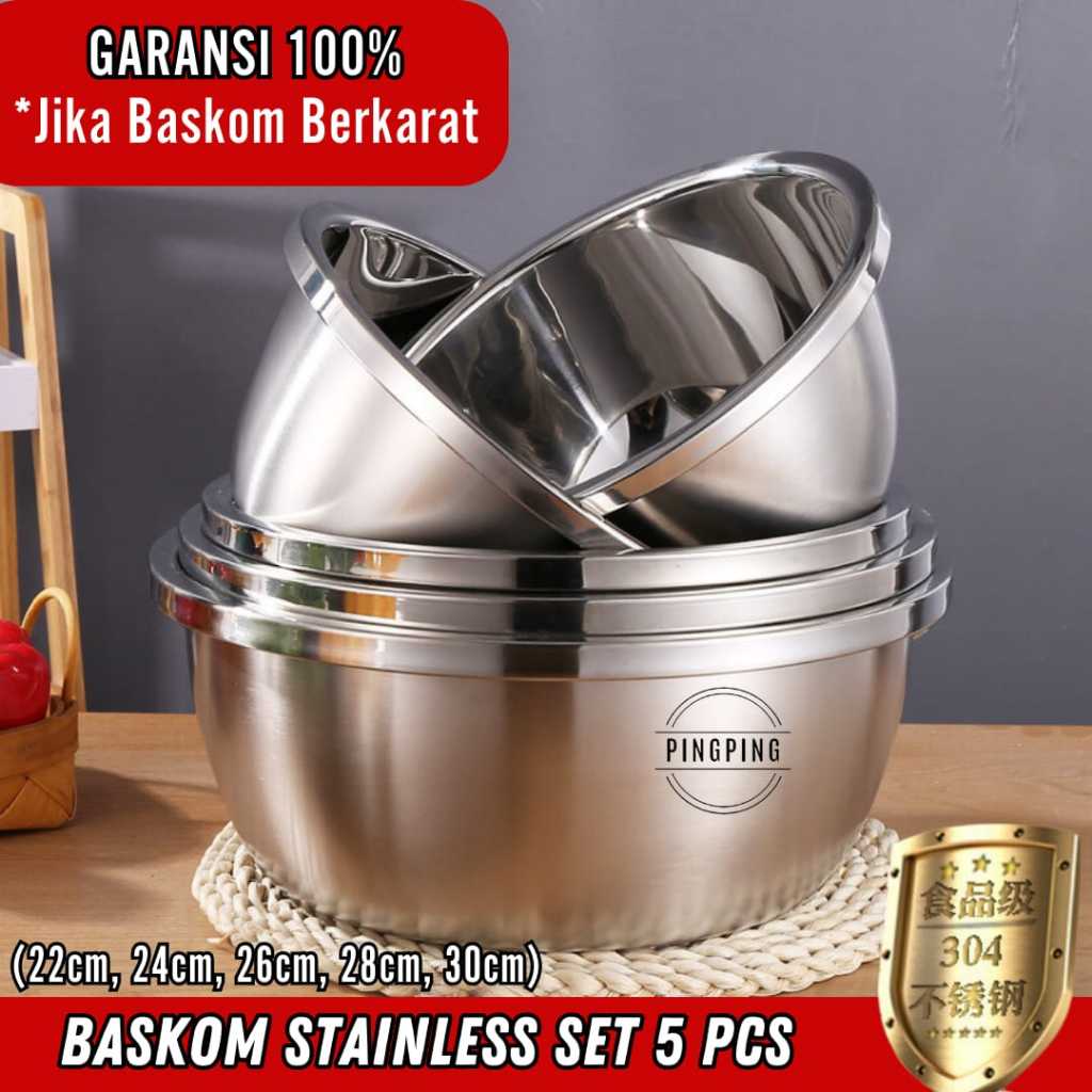 Baskom Set Stainless Tebal 5IN1 Wadah Cuci Beras Buah Sayur / Set Baskom Mangkuk Premium Isi 5 Pcs Tebal & Tinggi Stainless