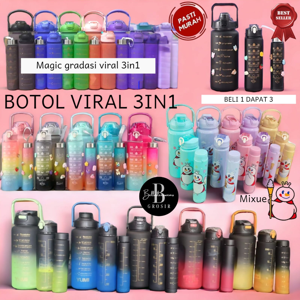 BELLA 3IN1 BOTOL VIRAL BERANAK GRADASI SANRIO POLOS MAGIC GRADASI VIRAL BPA FREE SEDOTAN STIKER 2D 3D