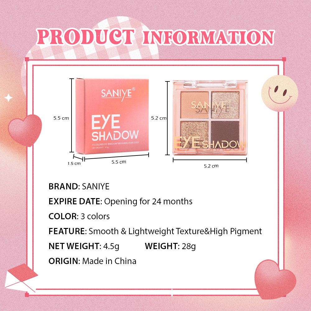 Eyeshadow Saniye 4 Warna Glitter Waterproof Sweet Alis Makeup E0435