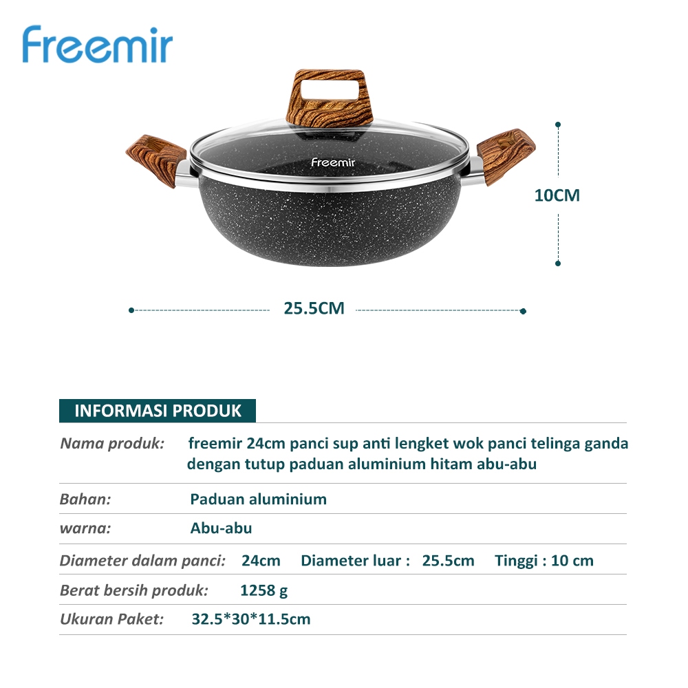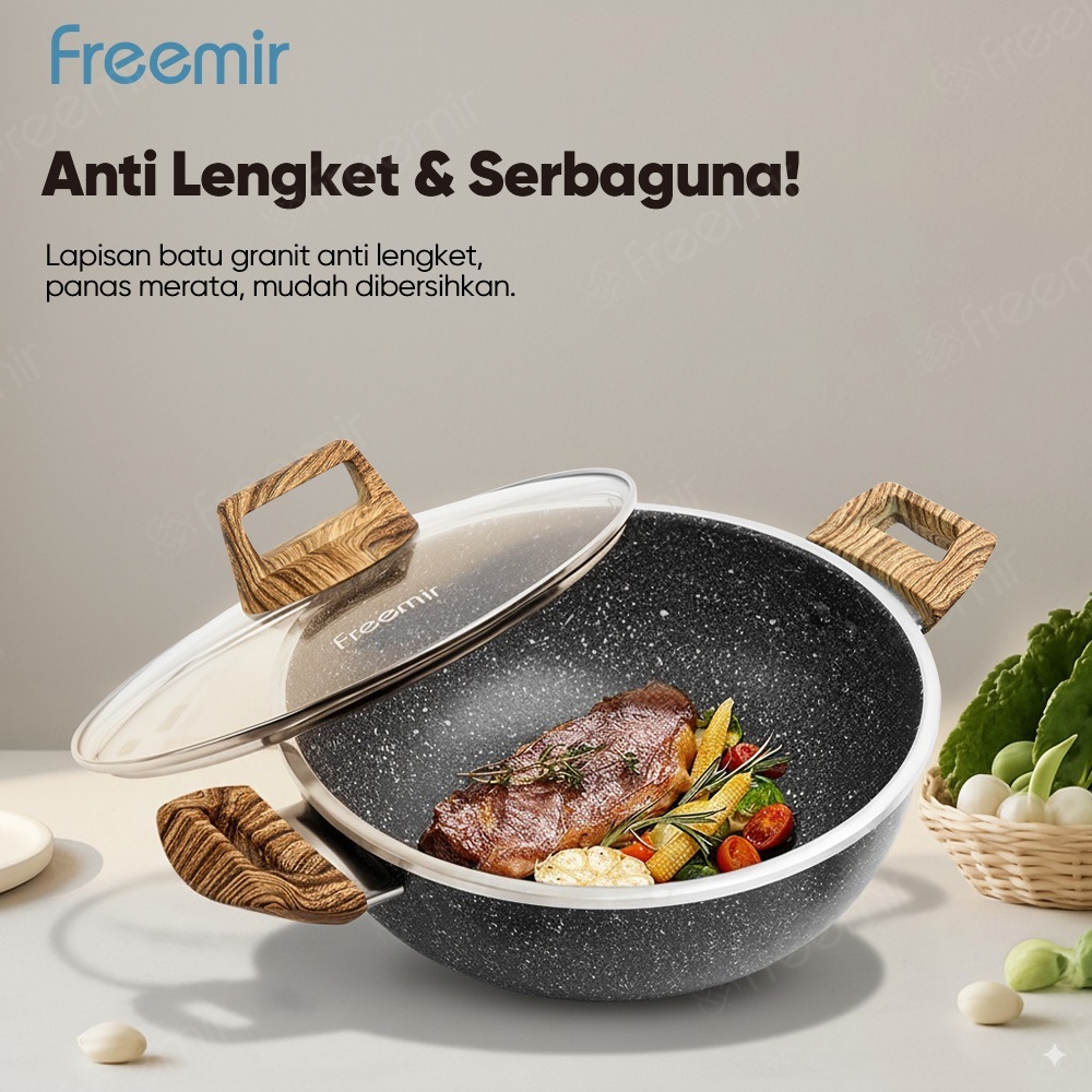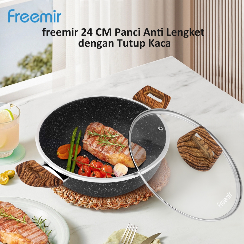 [New Launch] freemir Deep Wood Series anti lengket Panci Hitam 24cm Kedalaman 10cm Anti Lengket