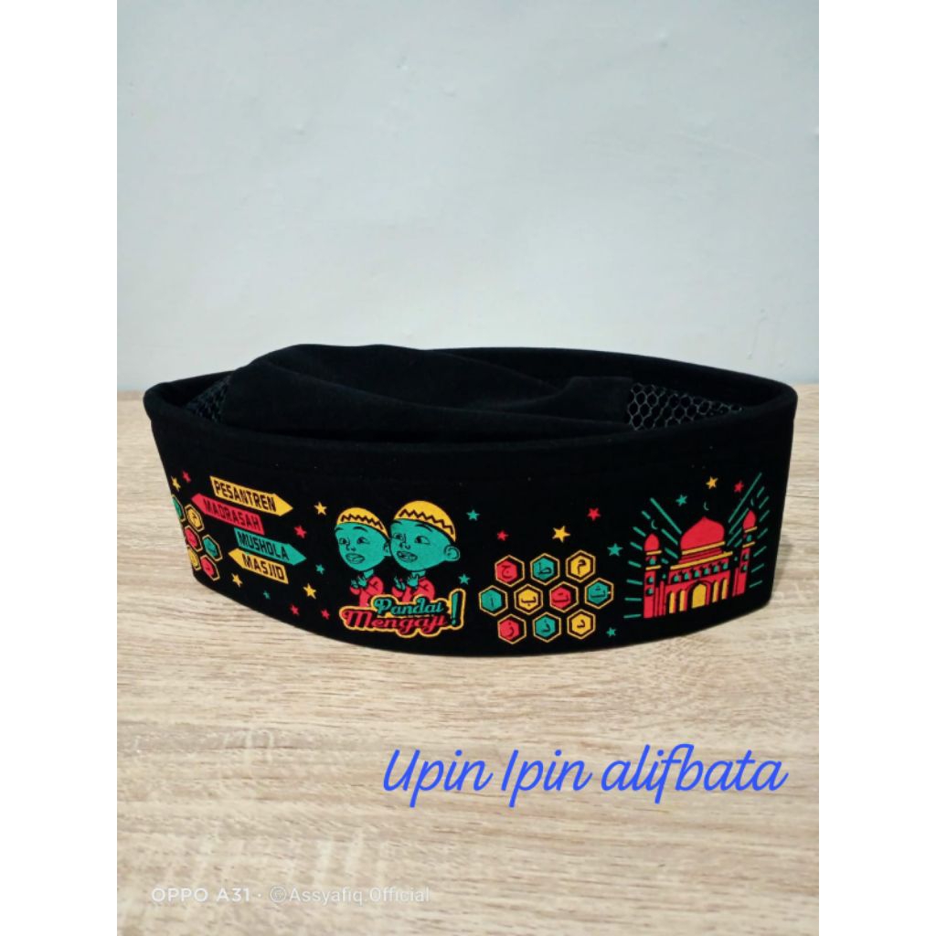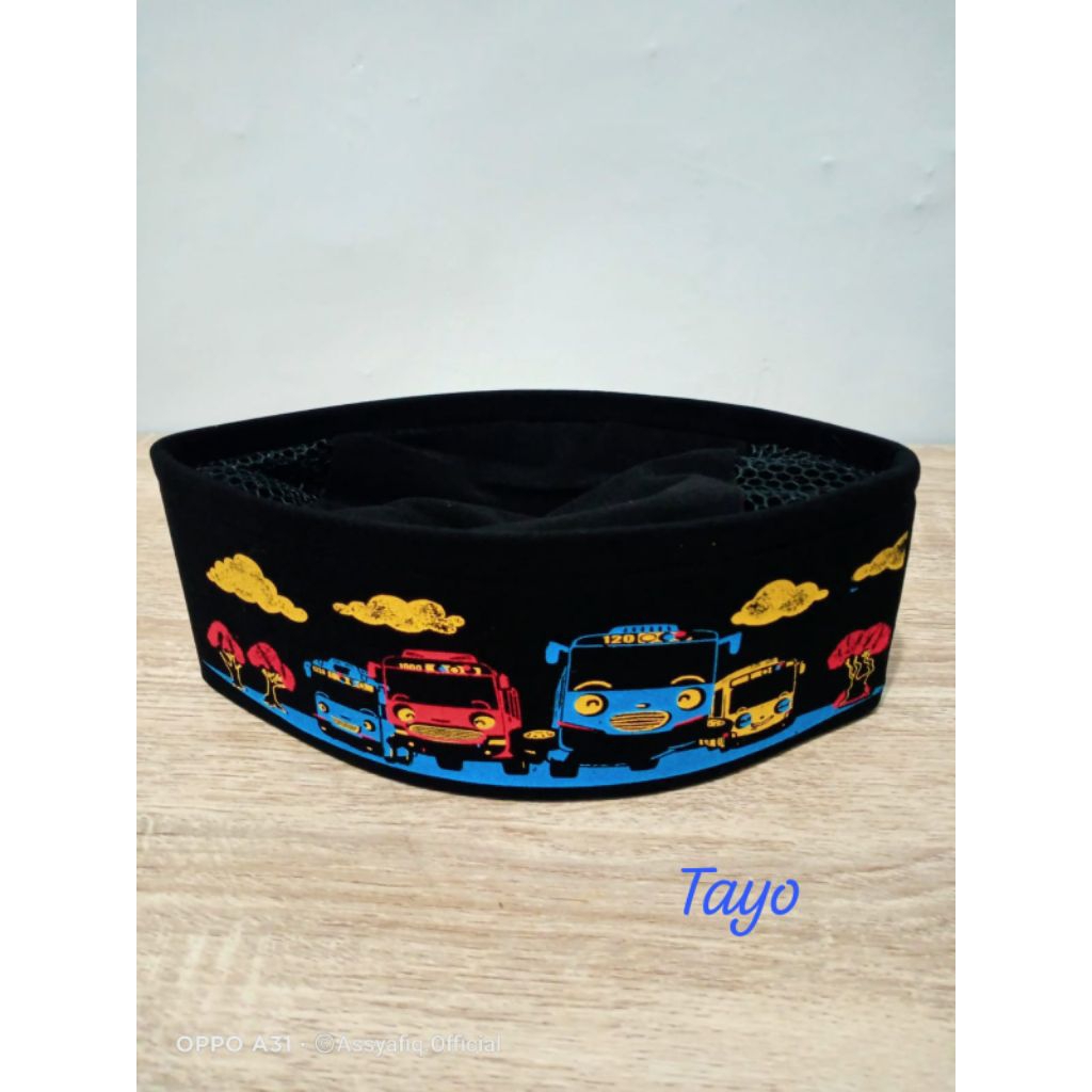 songkok peci anak sablon spon karakter tayo, upin ipin, iroman, spirderman, polos, nu dll part 1