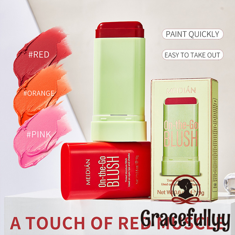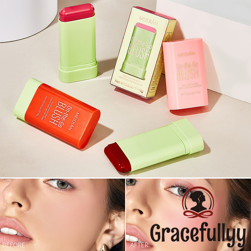 Blush Stick MEIDIAN Makeup Blush Stick Moisturize Nature Waterproof Gloss Lip & Cheek 3in1 Makeup Blusher Balm GY
