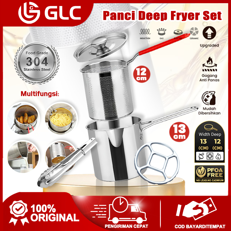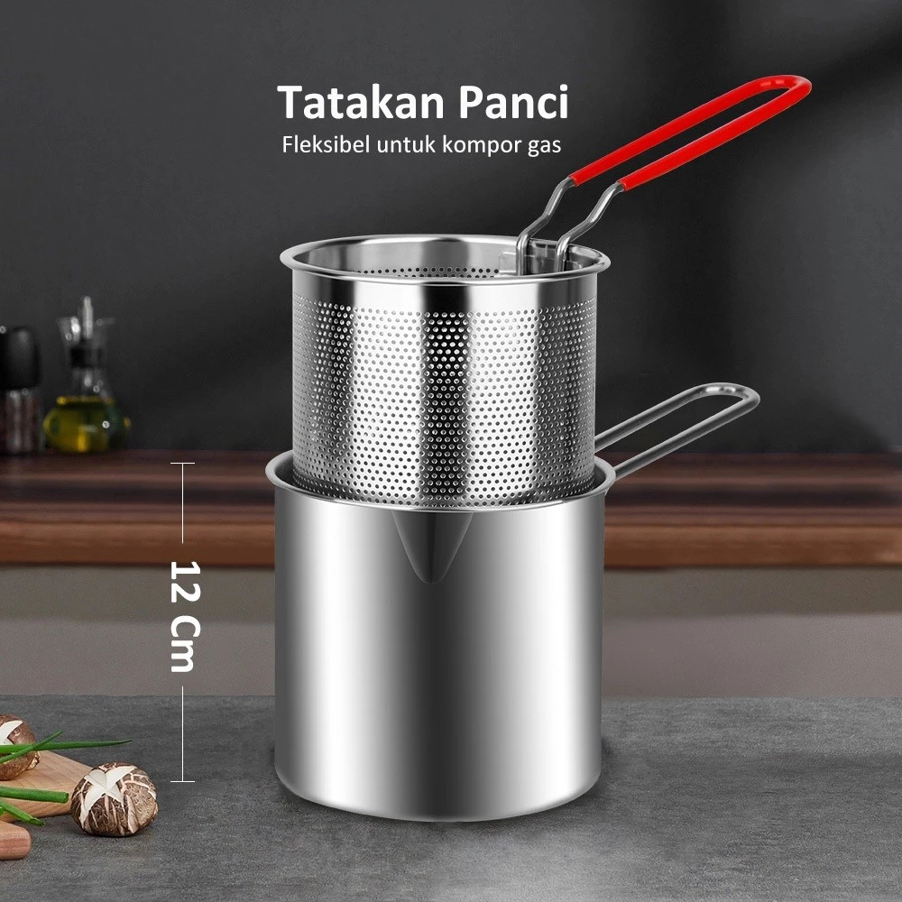 Deep Fryer 5 in 1 Multi Panci Penggorengan Rebus Stainless Steel Saringan Capitan Tutup Klip