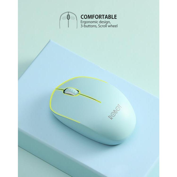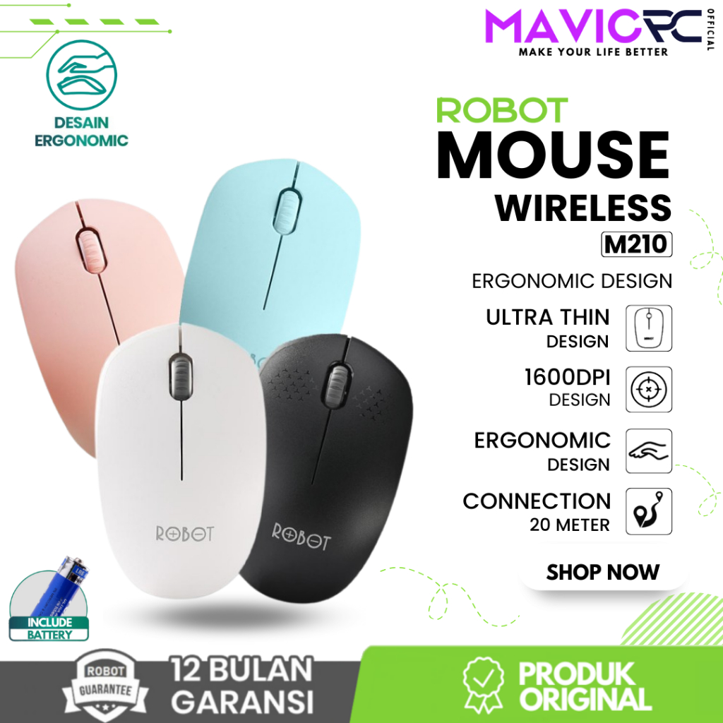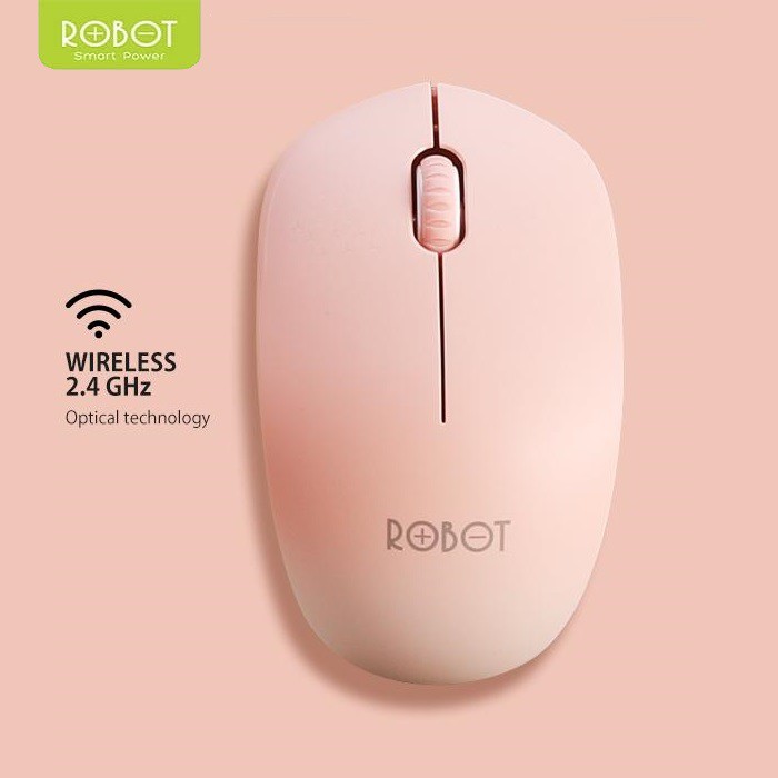 Mouse Wireless ROBOT M210 24G Optical USB Gaming 1600DPI Pink untuk PC Laptop