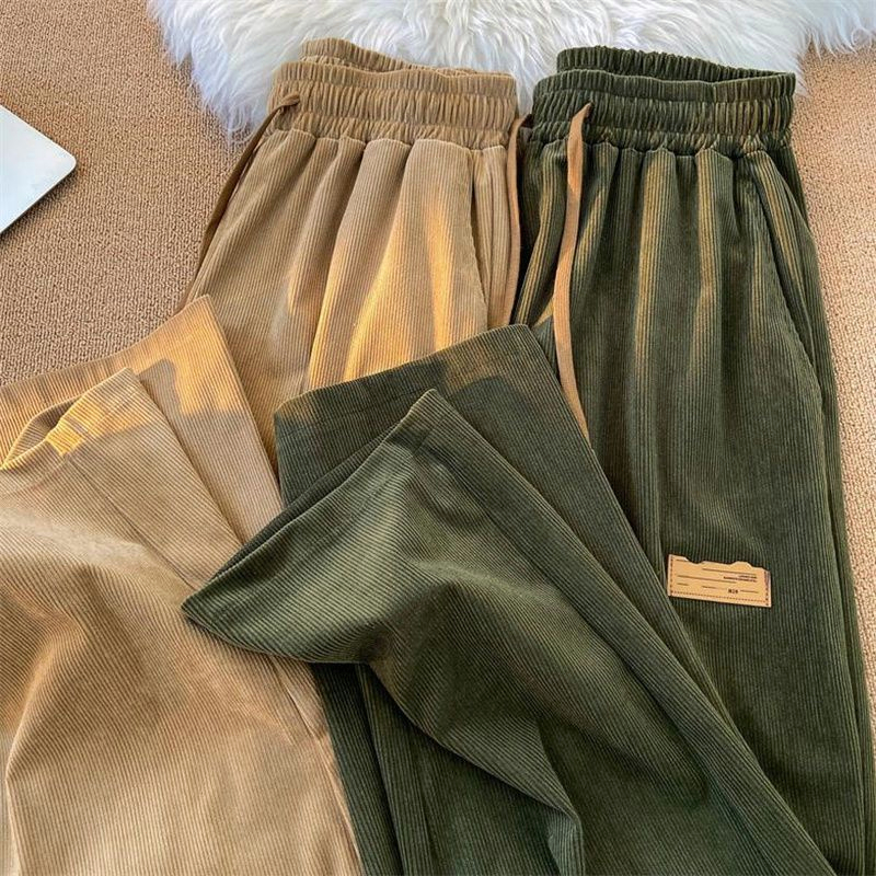 GDTima Celana Wanita Corduroy Pants Pinggang Elastis High Waist