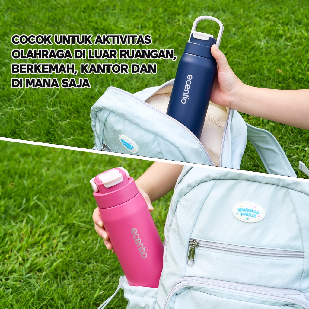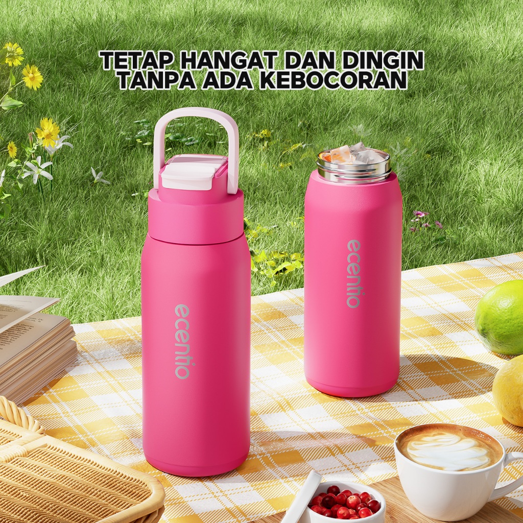 ecentio tumbler Stainless Vacuum 600ml Portable Termos Gagang Tersembunyi Botol minum besar
