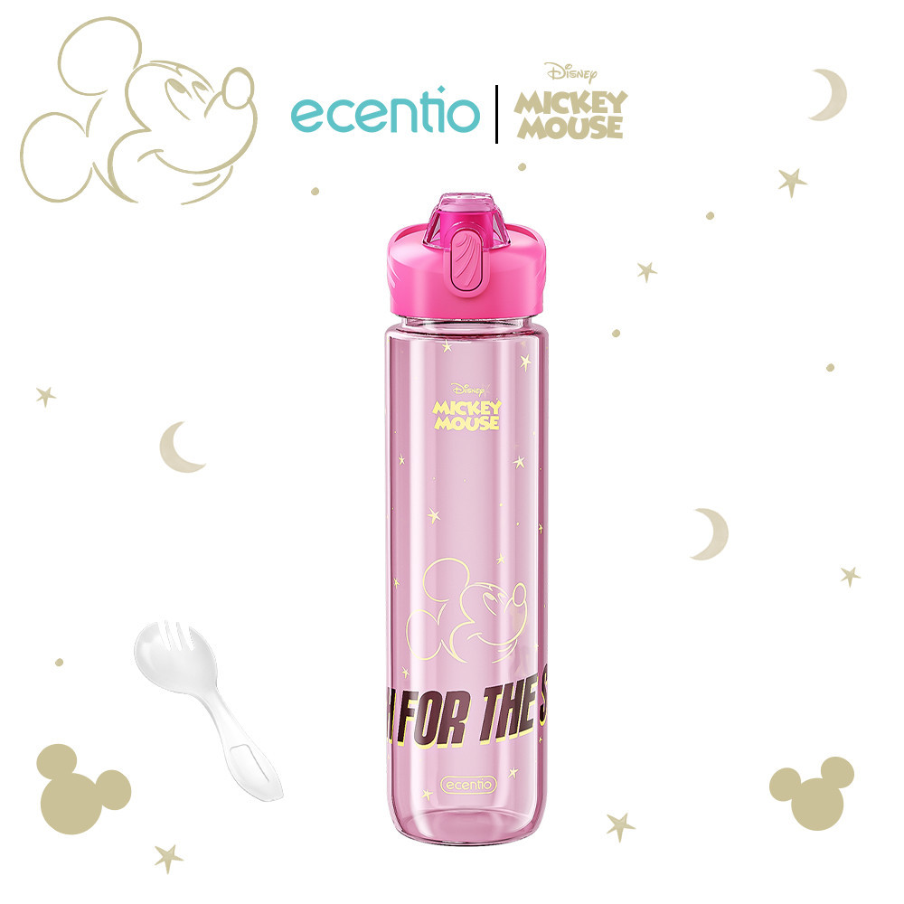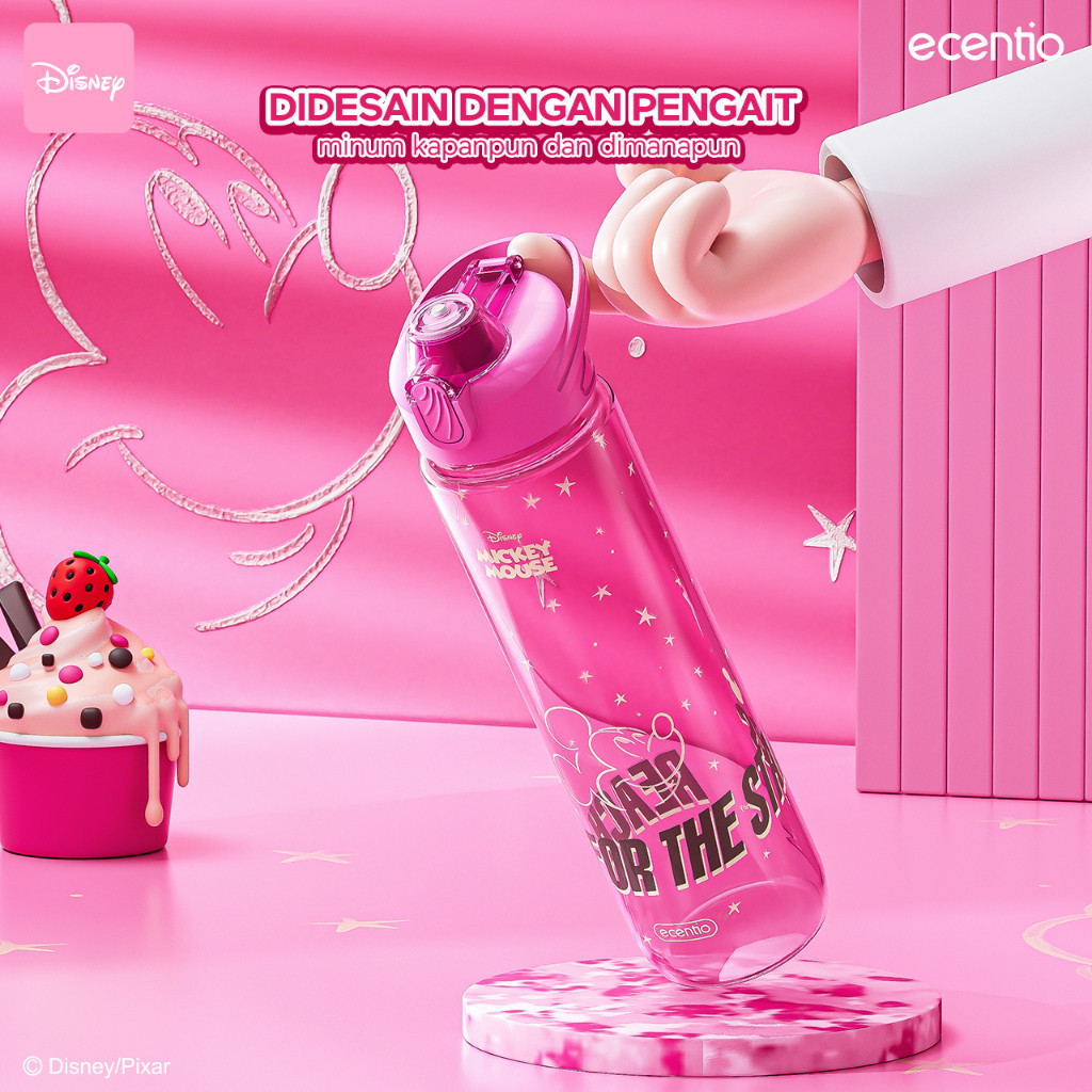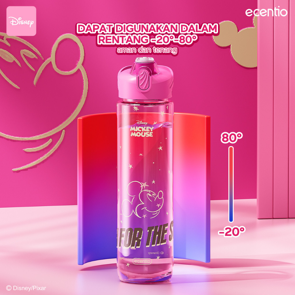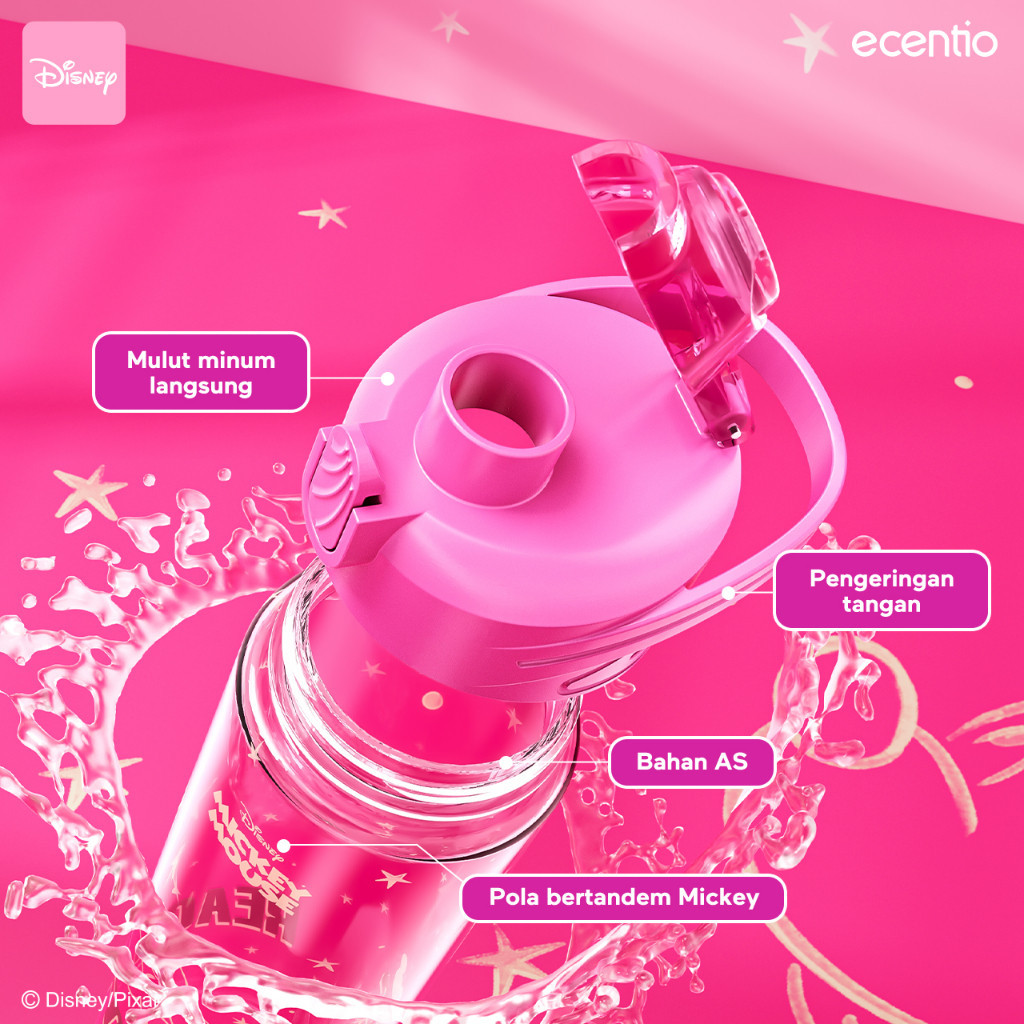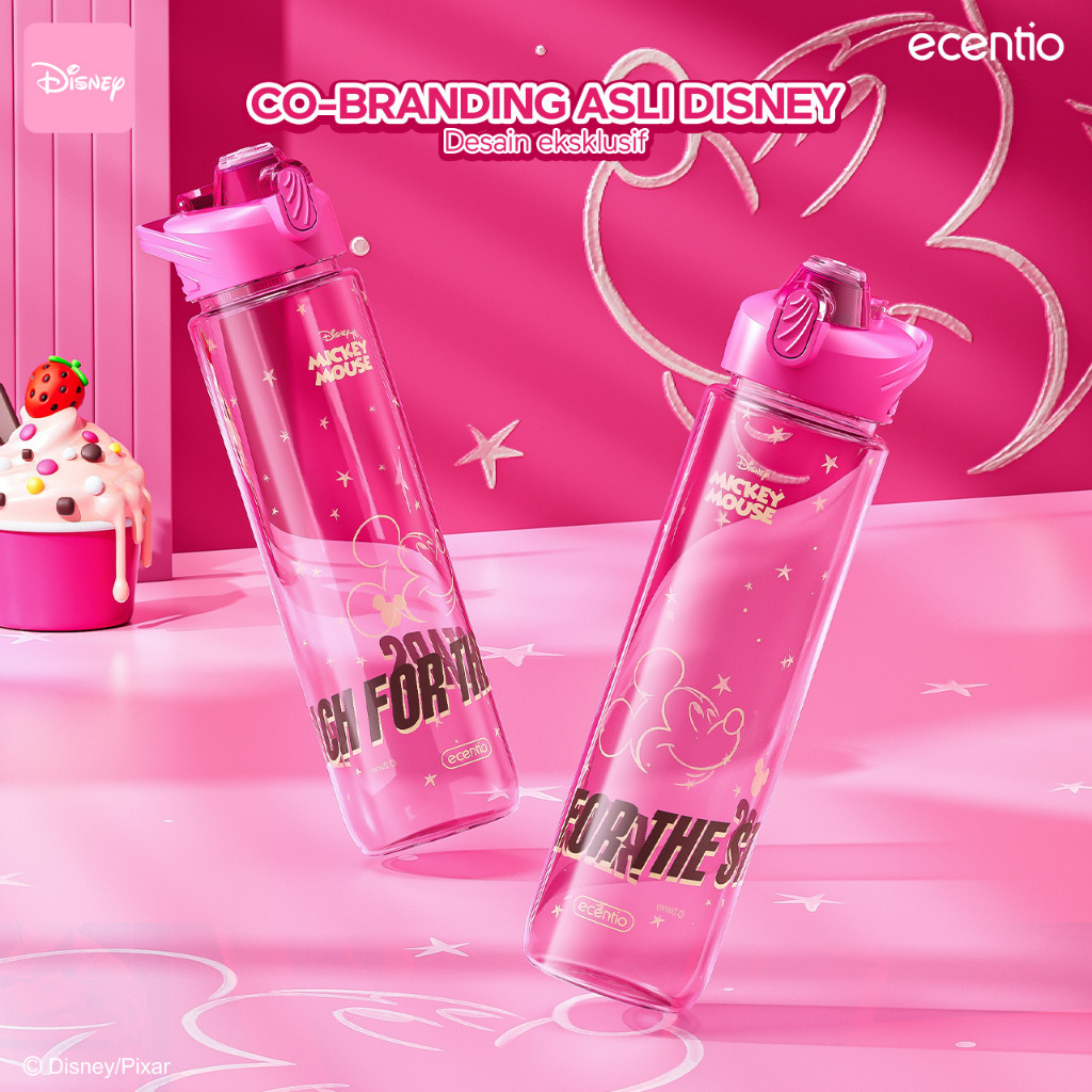 ecentio x Mickey Pink Botol Minum 1 Liter Food Grade Plastik Botol Air Minum anak Sedotan Bpa Free Botol Minum Aesthetic Lucu