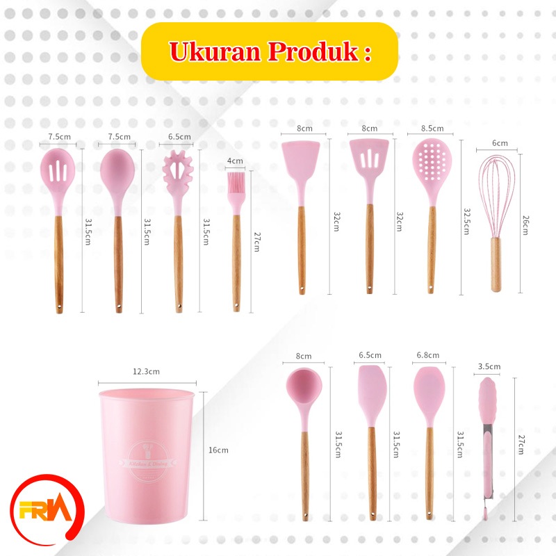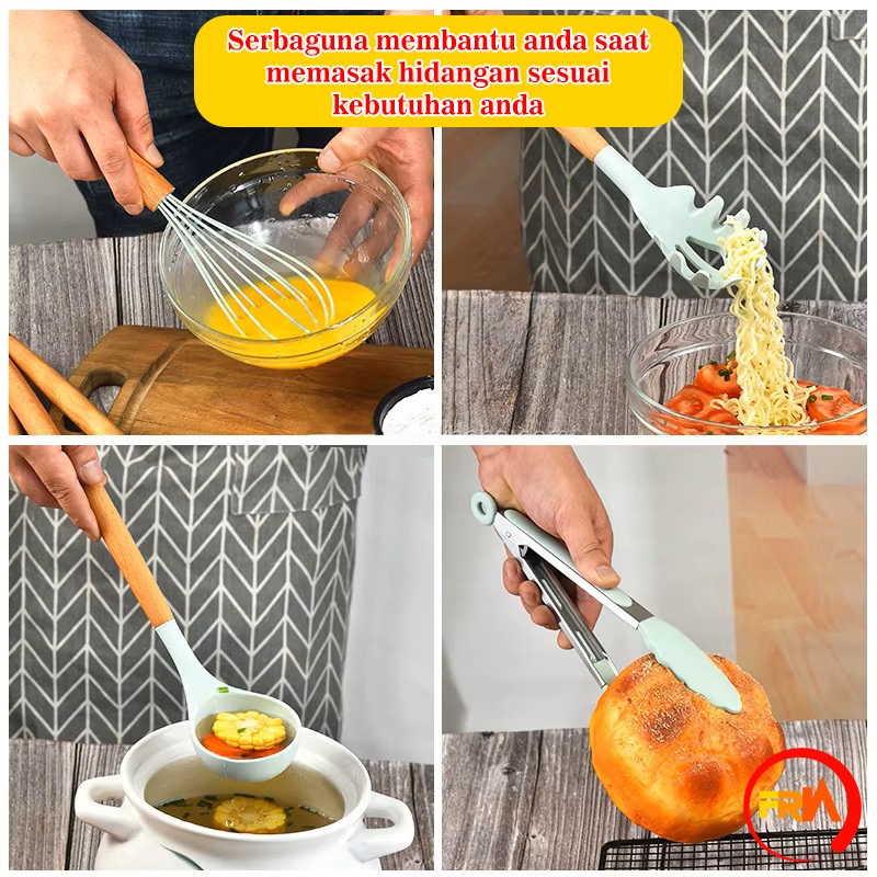 FRN Kitchenware - Silicone Spatula Set 12in1 Set Peralatan Masak Silicone Tahan Panas