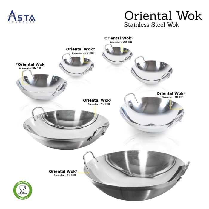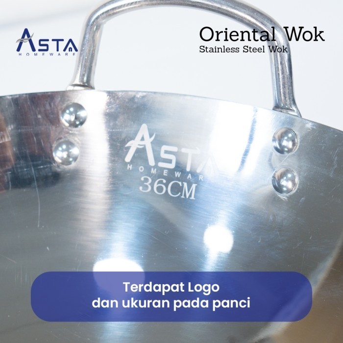 Asta Wajan Stainless Steel Oriental Wok Penggorengan Tebal 28 cm