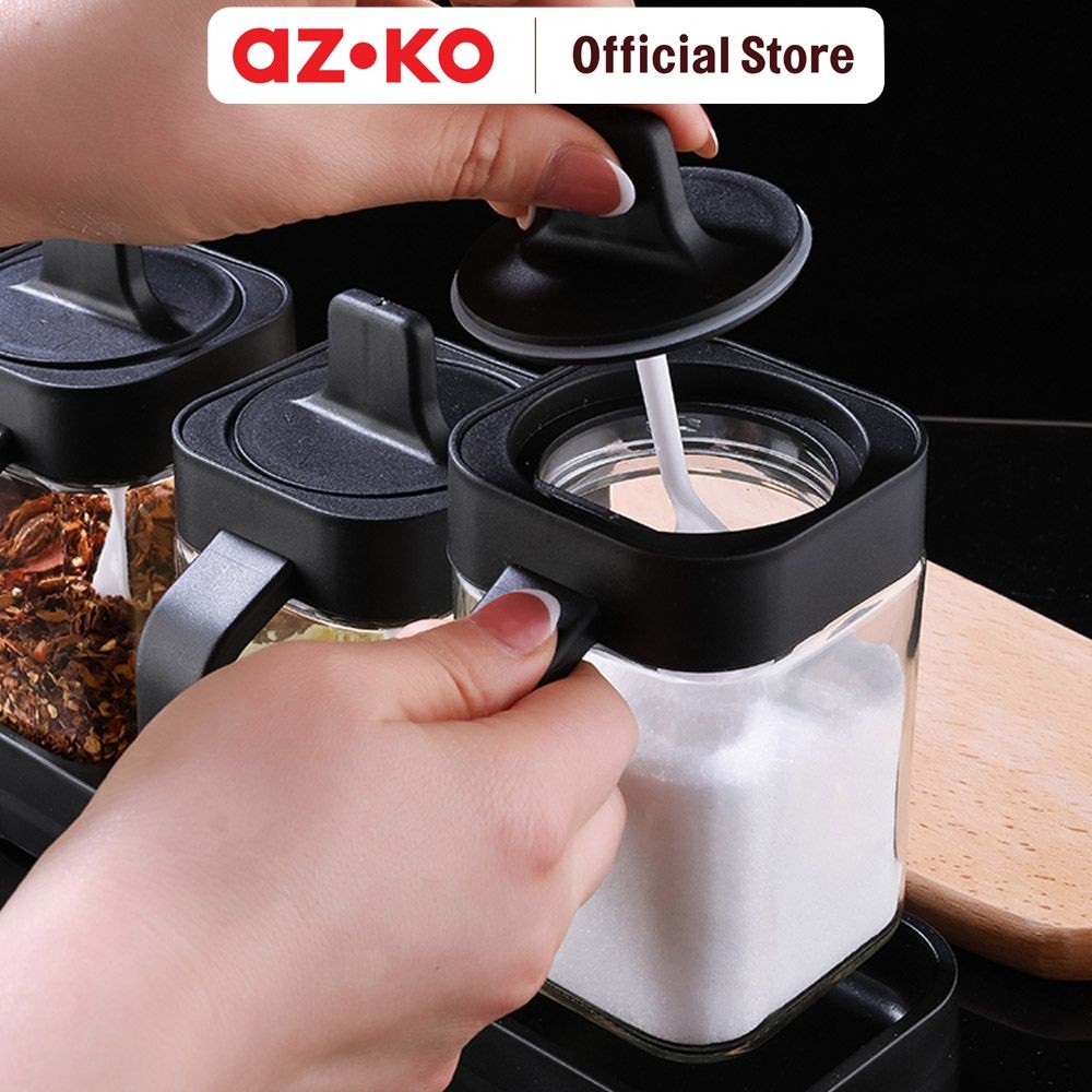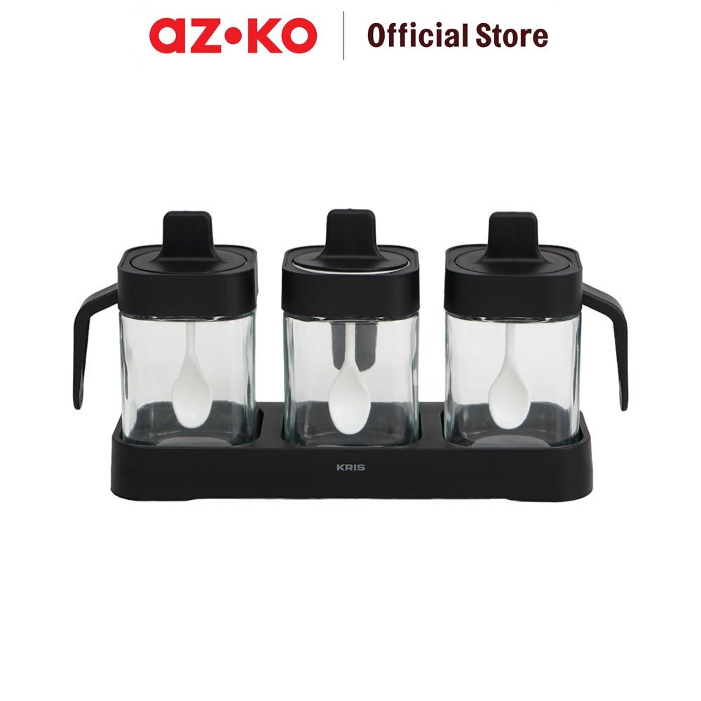 AZKO Kris 400 ml Set 3 Pcs Cuchara Tempat Bumbu Dapur - Hitam Organizer Penyimpanan Toples Bumbu Serbaguna Spices Rack Tempat Bumbu Perlengkapan Dapur Kitchen Tools