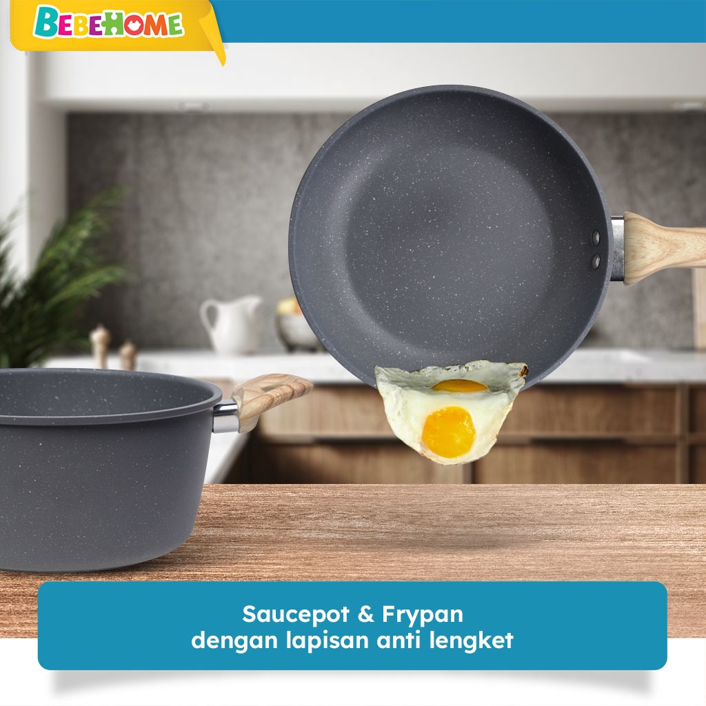 BEBEHOME X Tifale Celeste 3in1 Set Dark Grey Granite Casserole Frypan Saucepot 24CM Anti Lengket