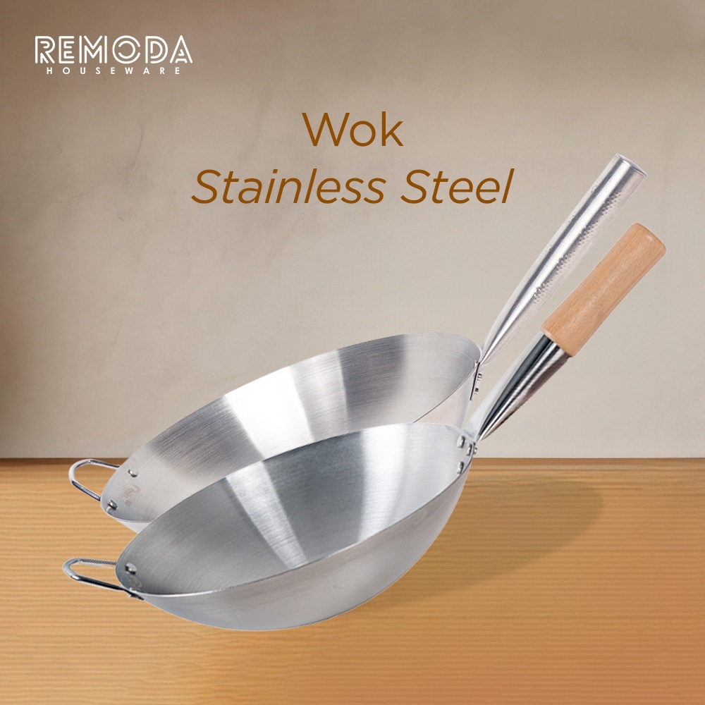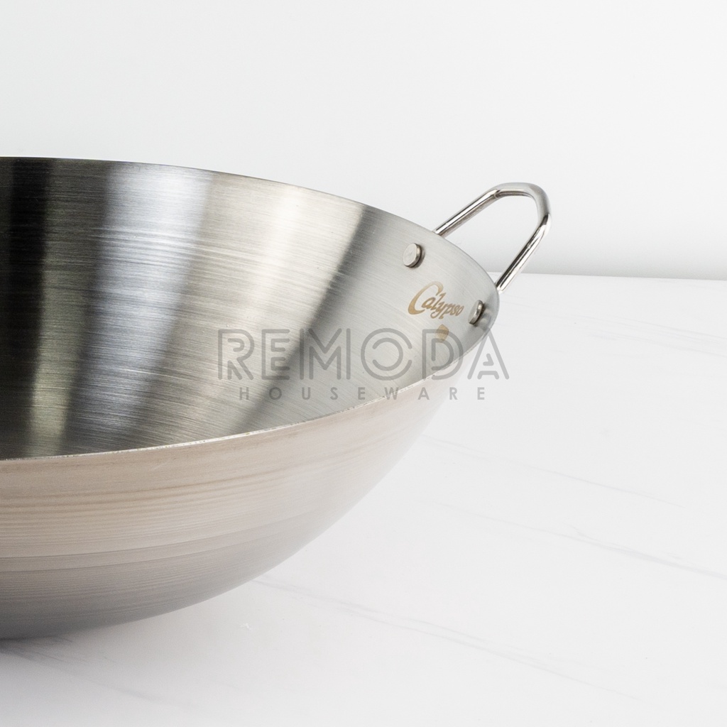 Calypso Wok Kuali Wajan Penggorengan Ukuran 30-40cm Gagang Stainless & Kayu Tebal