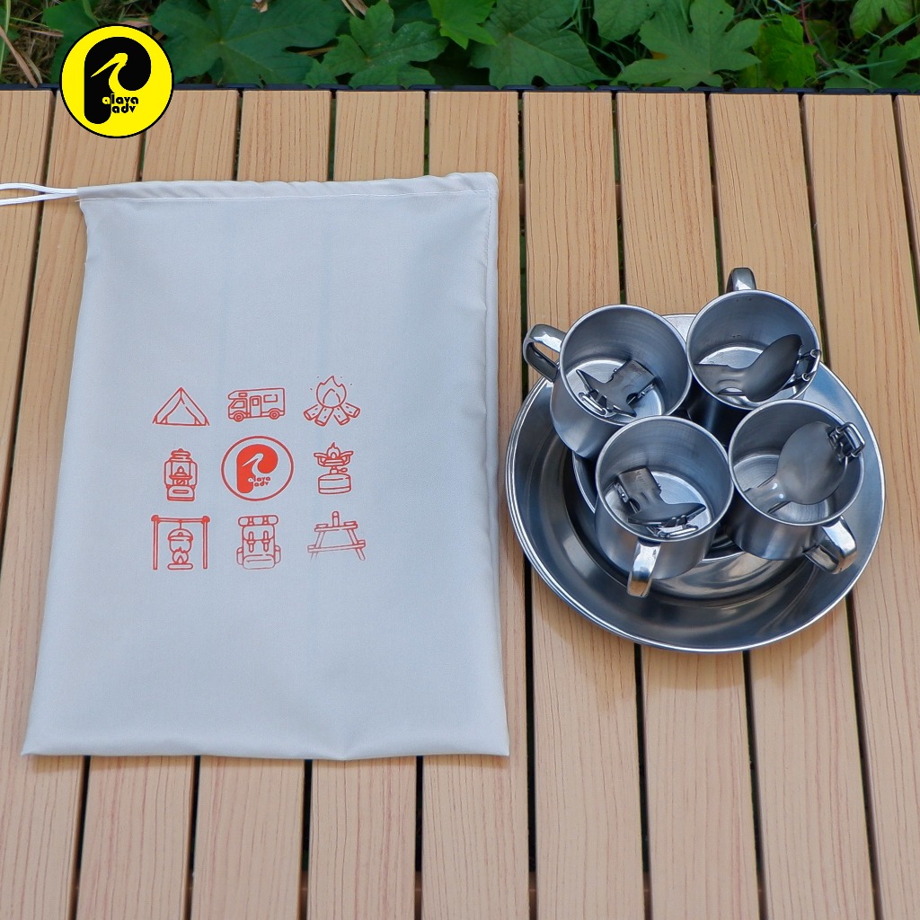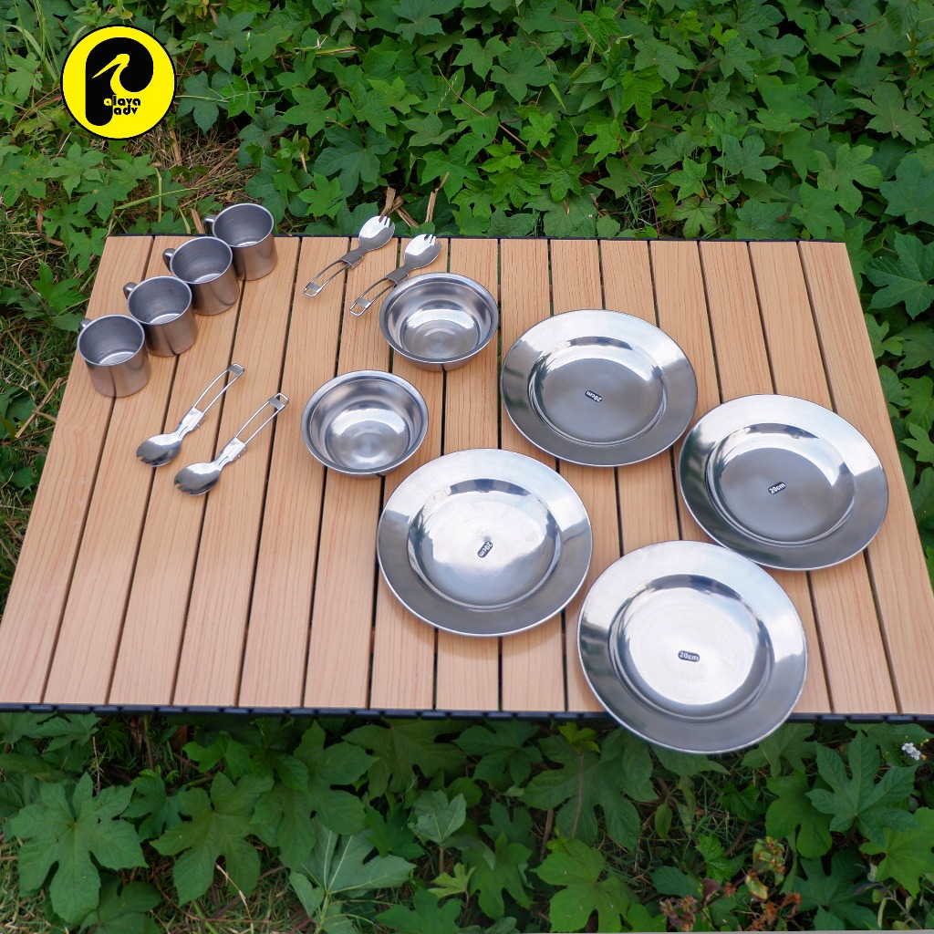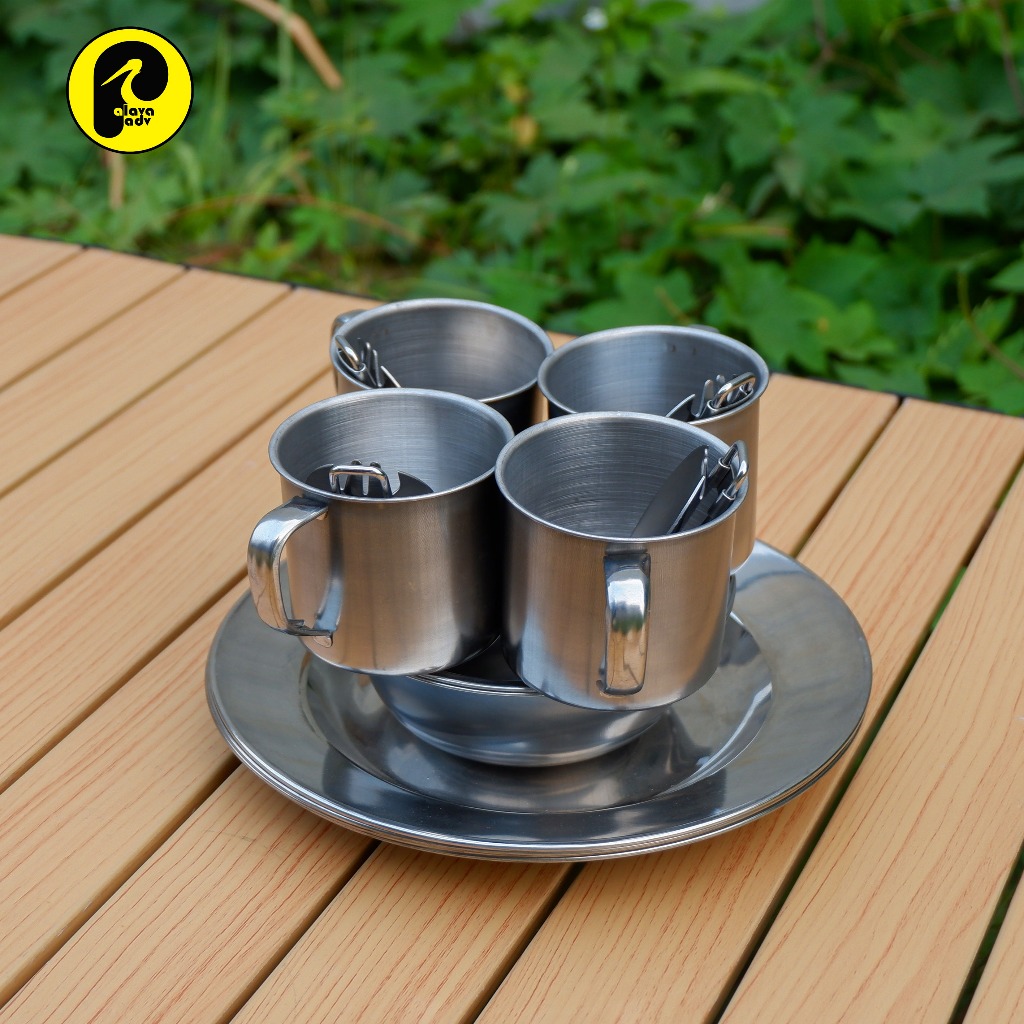 CEMARA alat makan set 4 orang gelas piring sendok mangkok camping