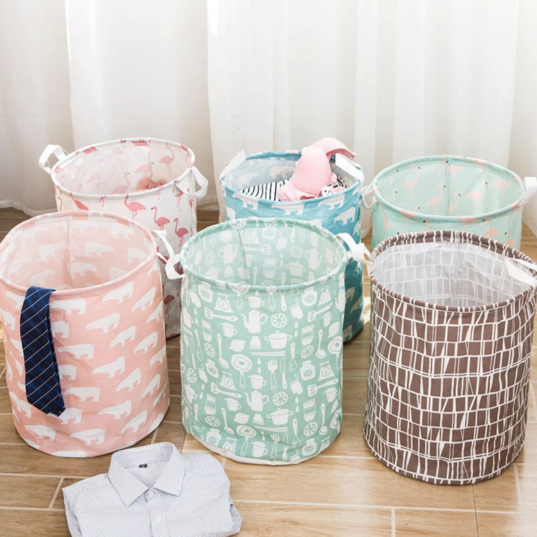 Keranjang Baju Cucian Laundry Basket Bulat Tempat Pakaian Kotor Serbaguna