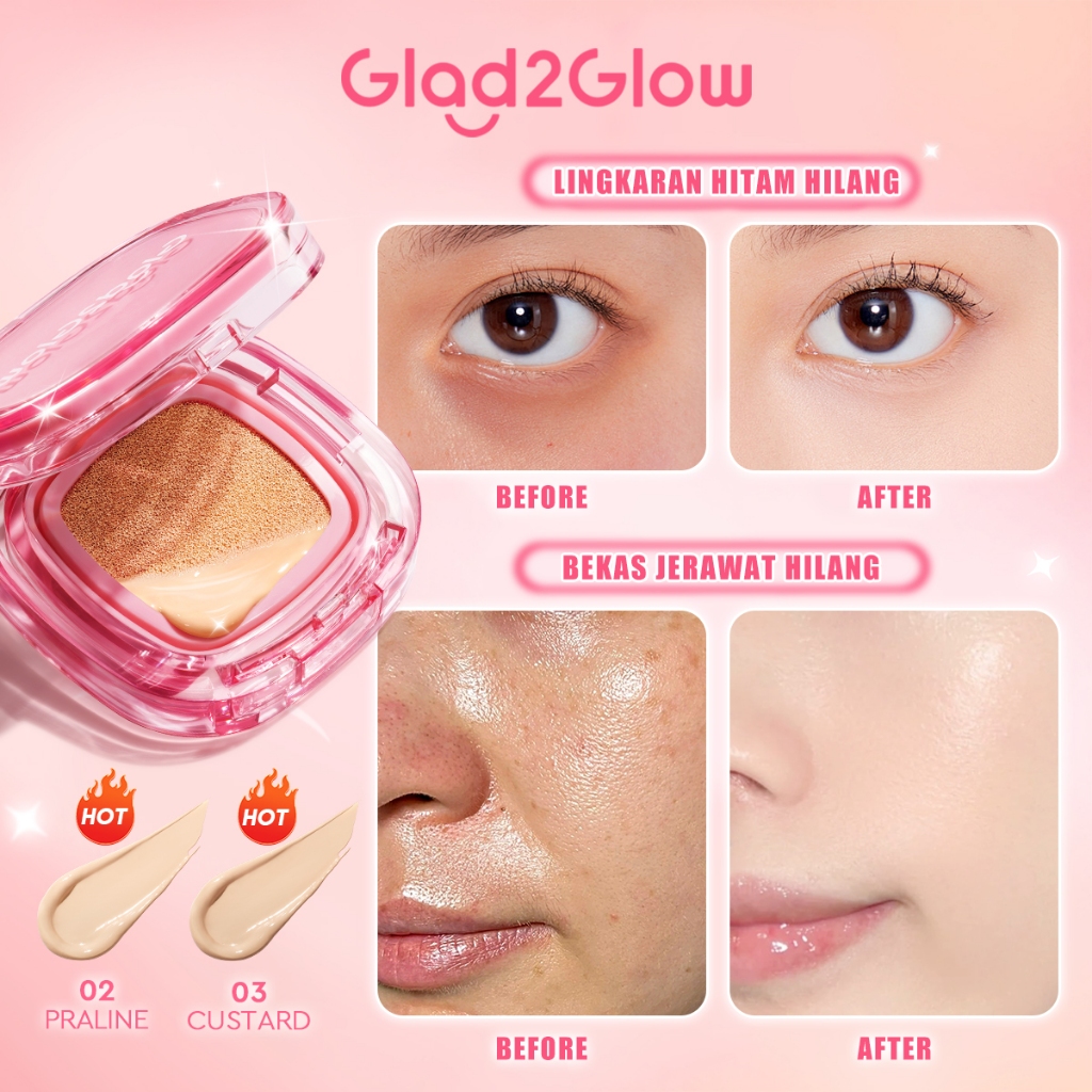 Cushion Foundation Glad2Glow 11gr Semi-Matte Full Coverage Waterproof