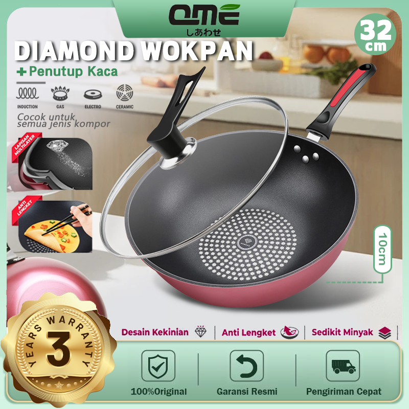 Diamond Wok Pan Wajan Penggorengan Lengket Anti Batu Medis Ukuran 33cm Wajan Medis Antilengket Bahan