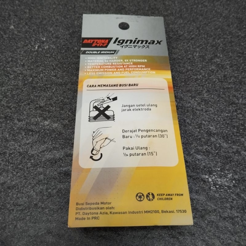 BUSI DAYTONA IGNIMAX DOUBLE IRIDIUM CB150 CBR150 MX15 VIXION SATRIA FU CS1 NINJA 250 NVL KHARISMA BEAT FI VARIO 125 SONIC K56 VARIO 150 R15 R25 CR9E 3395