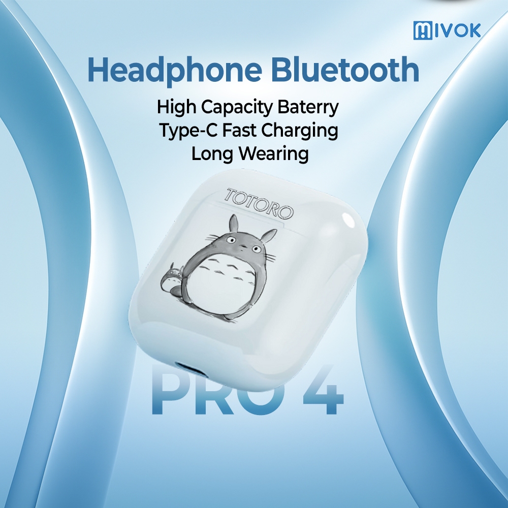 Headphone MIVOK PRO 4 TWS Bluetooth Nirkabel Kartun Kontrol Sentuh Olahraga Bass Stereo