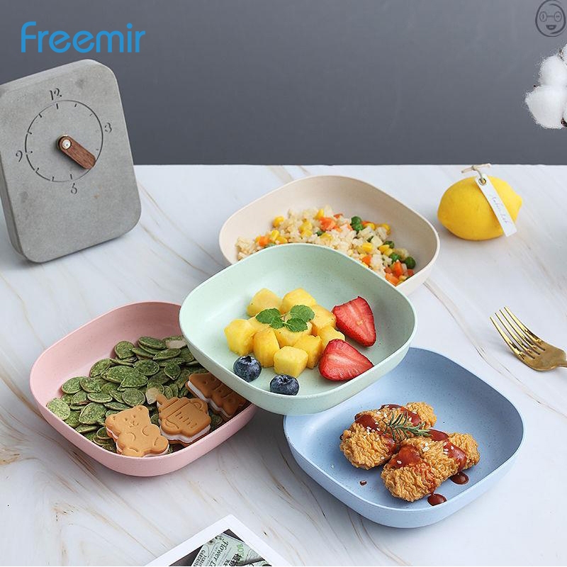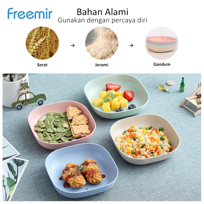 freemir original Set Piring 4Pcs Wheat Straw Anti Pecah Microwave Safe