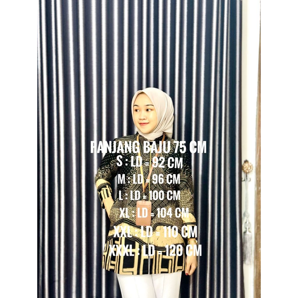 Blouse Batik Wanita Lengan Balon NAFIRA HITAM - Bahan Katun Prima Premium Batik Kerja Wanita Modern