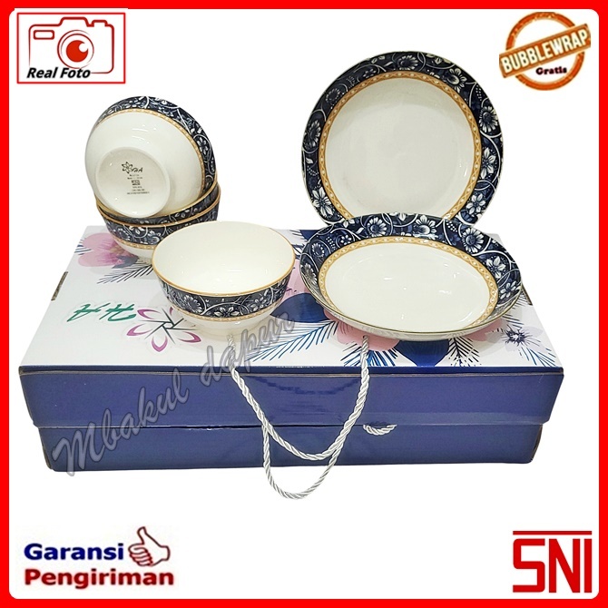 Hampers set Set kado Gift Box Keramik piring 20cm 2pc mangkok 12cm 4pc + Jinjingan Tebal Mewah SNI