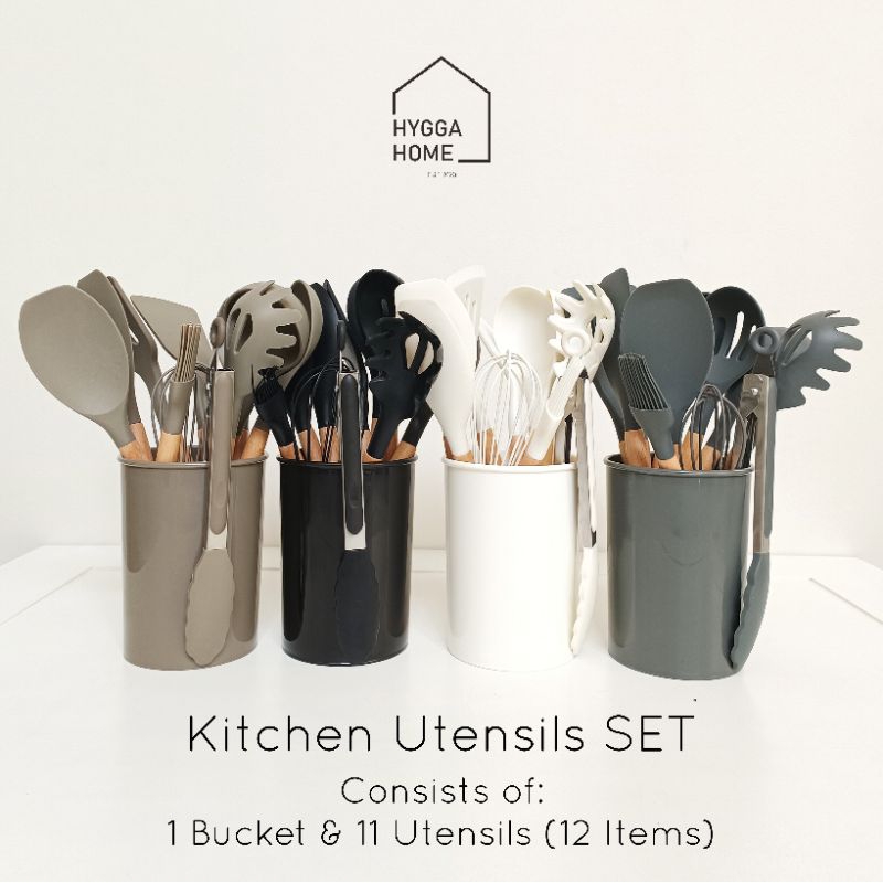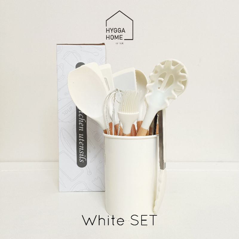 Hygga Home SET Silikon Sutil Pencapit Spatula Kuas Sendok Gagang Kayu/Silicone Kitchen Utensils SET