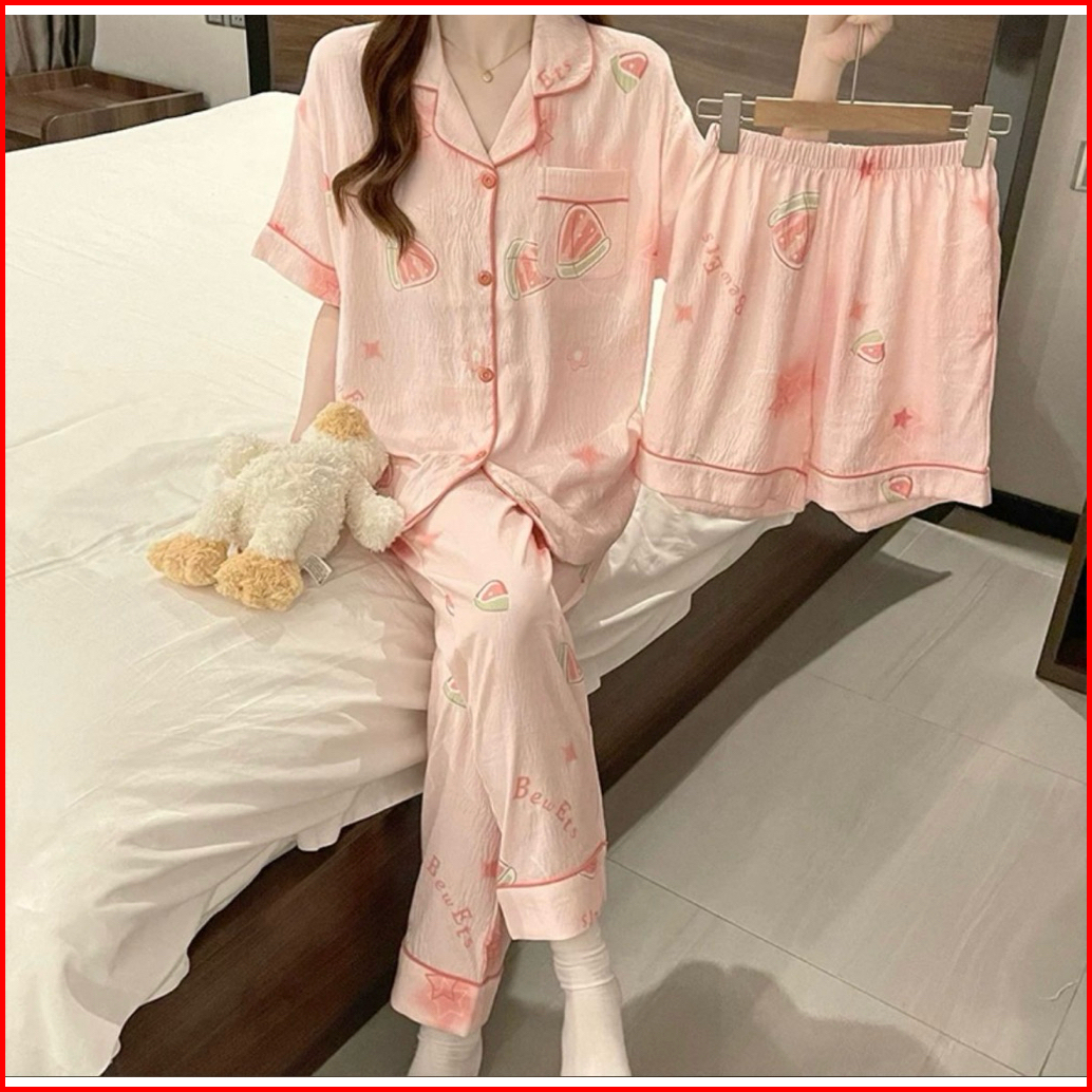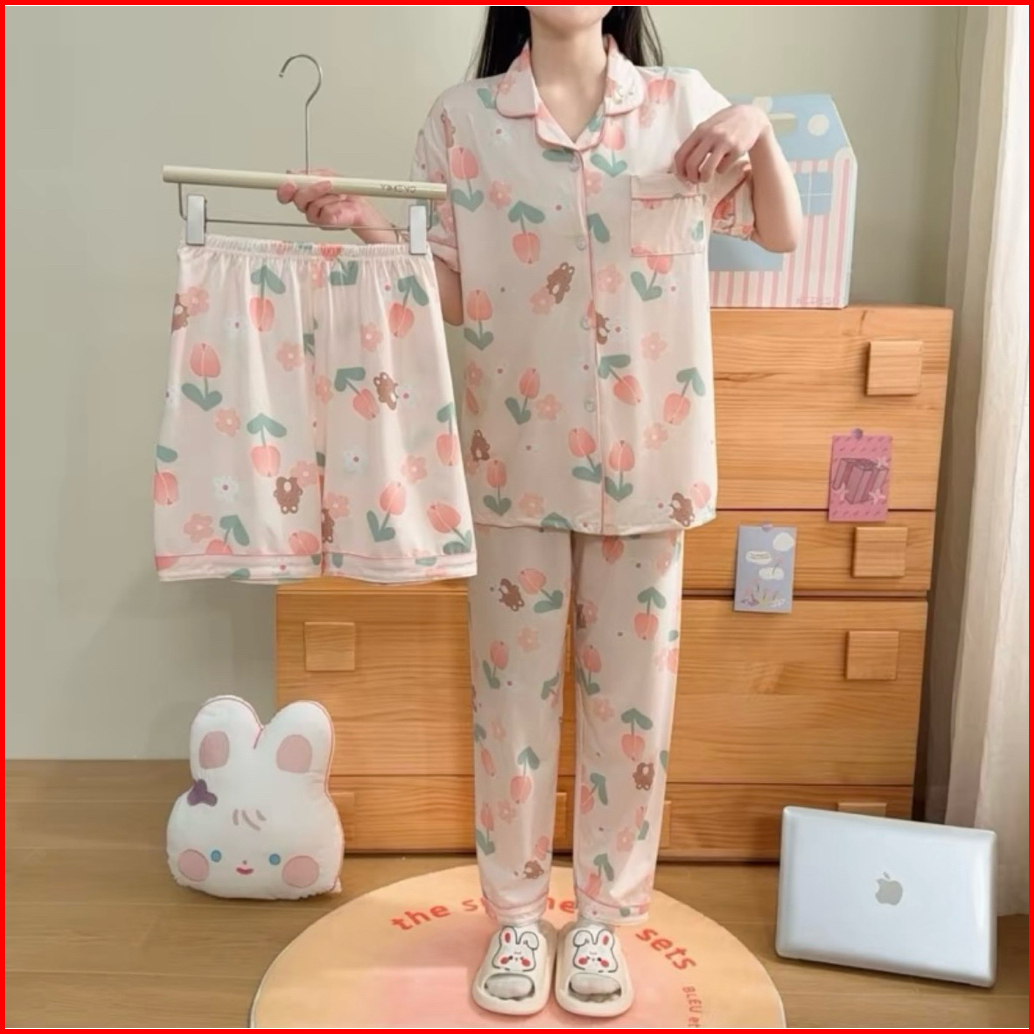 Vivifashionsby Ready Stok Setelan Baju Tidur Wanita Kekinian Set Baju Santai Set Baju Tidur Lengan Pendek