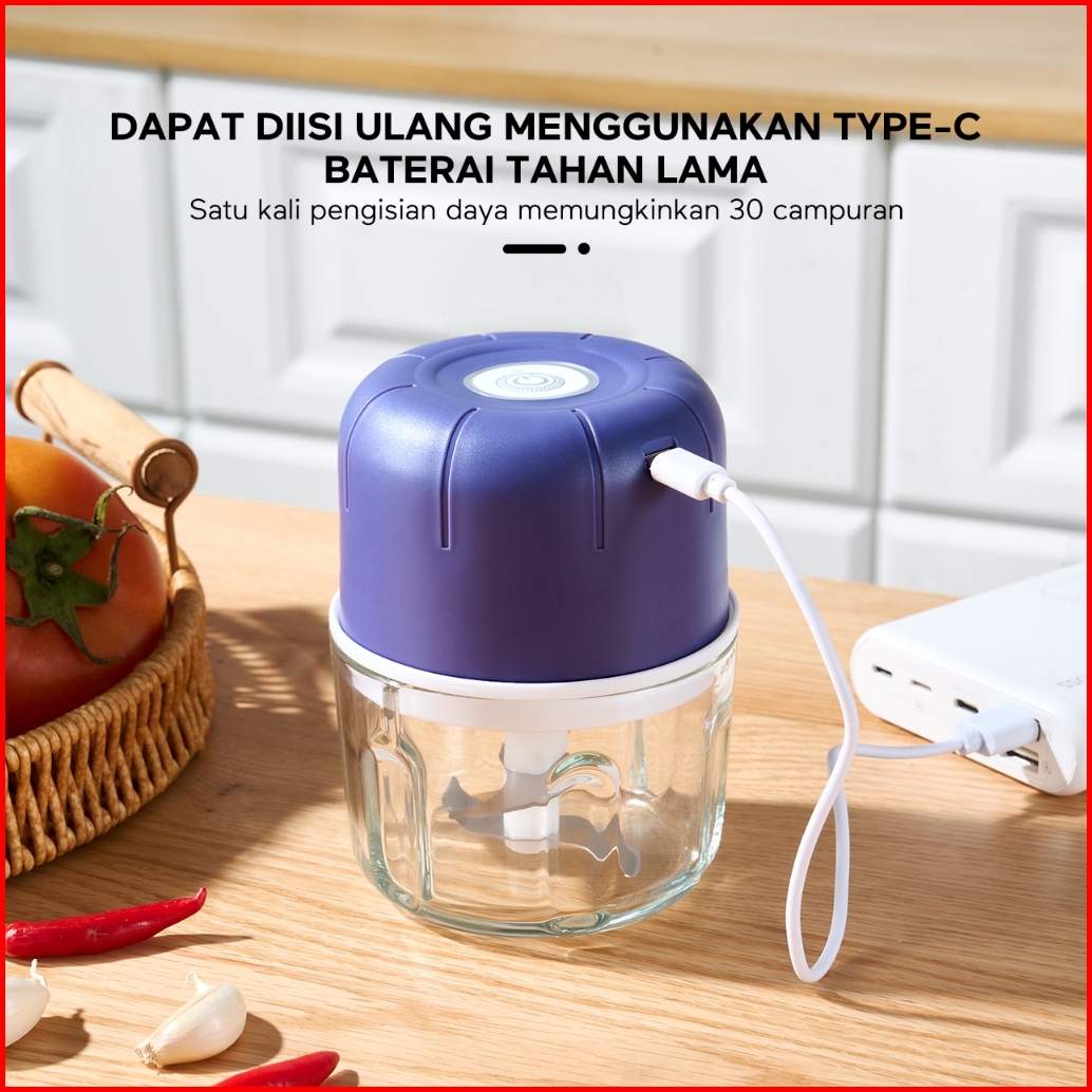 Ecentio Mini Chopper 6 Mata Pisau 250ml Portable Multifungsi Kaca Blender Kaca Tebal Gilingan Mini Bumbu Dan Daging