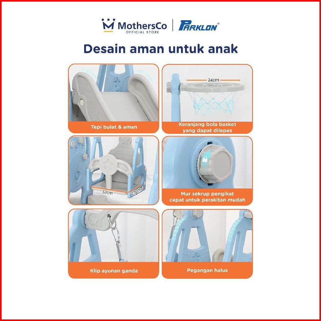 Parklon Multifungsi 3 In 1 Perosotan Anak Dengan Ayunan Ring Basket Perosotan Clown Anak Multifunction Clown Kids Slide