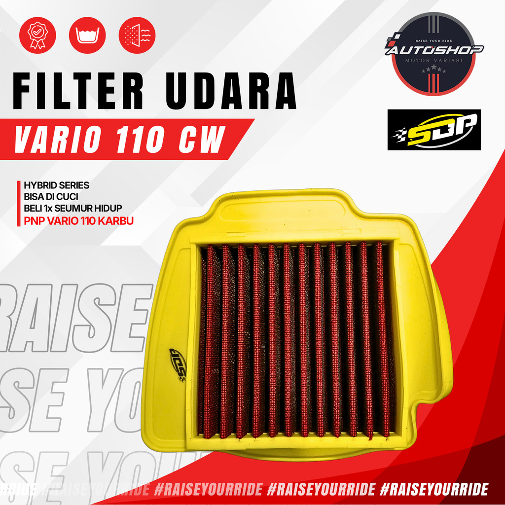 Filter Udara Hybrid SDP – VARIO 110 Karbu CW | 30 Mikron, Kain + Kawat + Karet Premium, Tarikan Enteng
