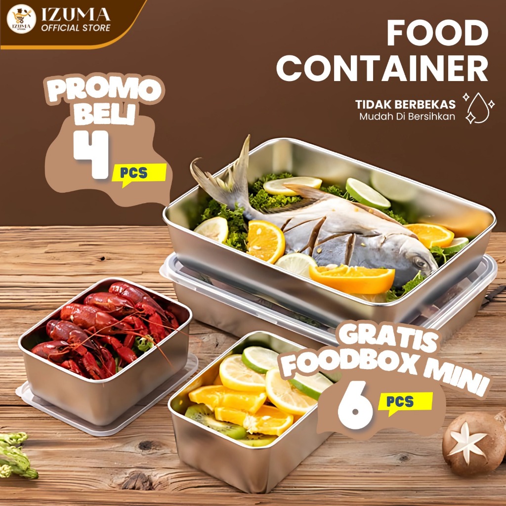IZUMA Food Box BUNDLING 10Pcs Stainless Steel Wadah Makanan Microwave Food Grade + Tutup
