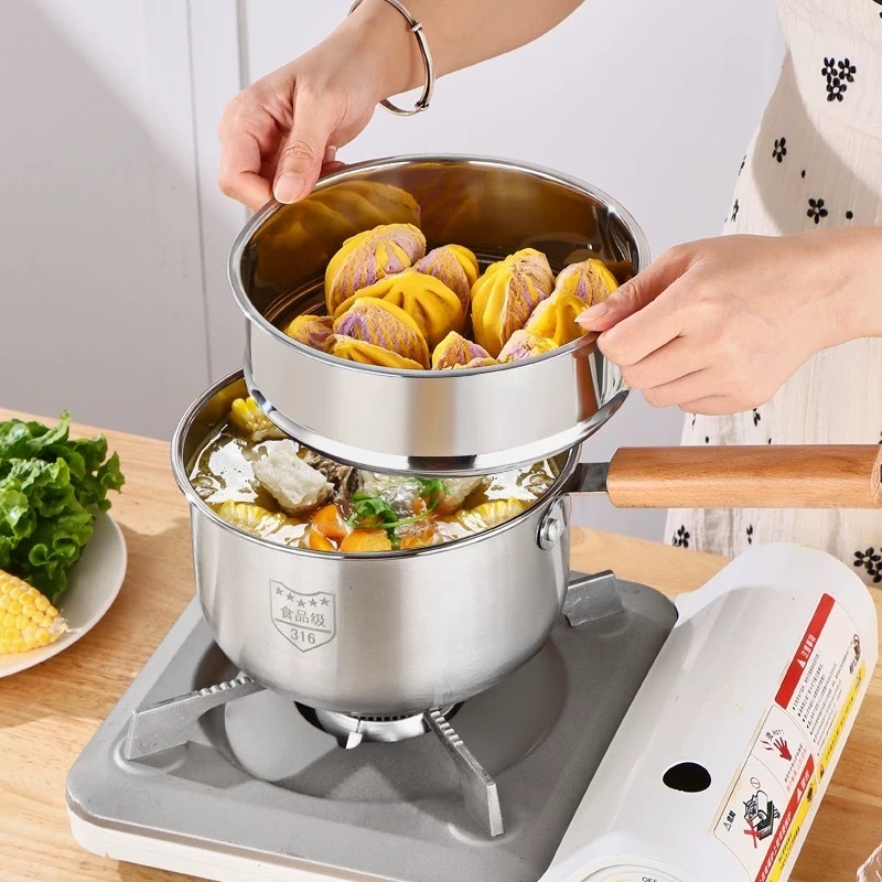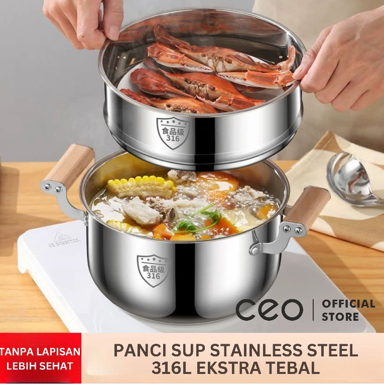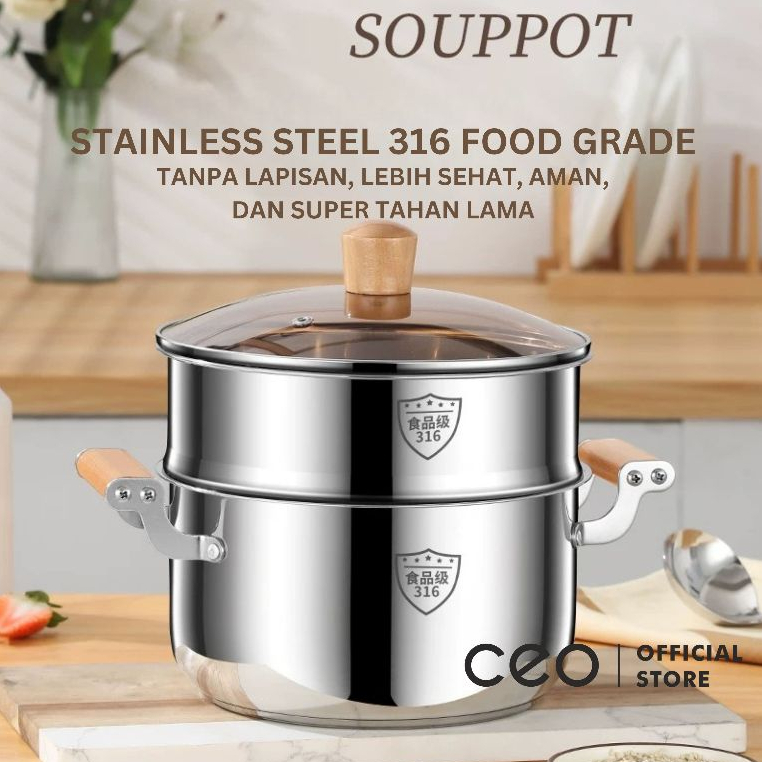 CEO Panci Kukusan Steam Pot Kukus Set 2 Susun 16/18/20/24CM Stainless Steel Tahan Karat + Tutup Kaca