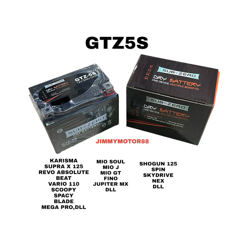 BATTERY AKI MOTOR KERING ACCU GTZ5S 12V-5AH/10HR KARISMA SUPRA X 125 BEAT VARIO 110 SCOOPY MIO SOUL MIO J MIO GT SPIN SHOGUN 125 DLL MEREK SUBZERO HIGH KUALITAS SUPER