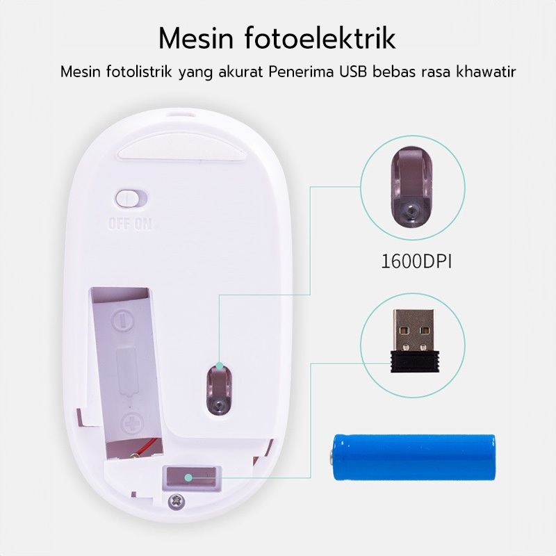 Mouse Wireless Jovitech Macaroon Silent Dual Mode Bluetooth USB Receiver Rechargeable Notebook Tablet Laptop MW01