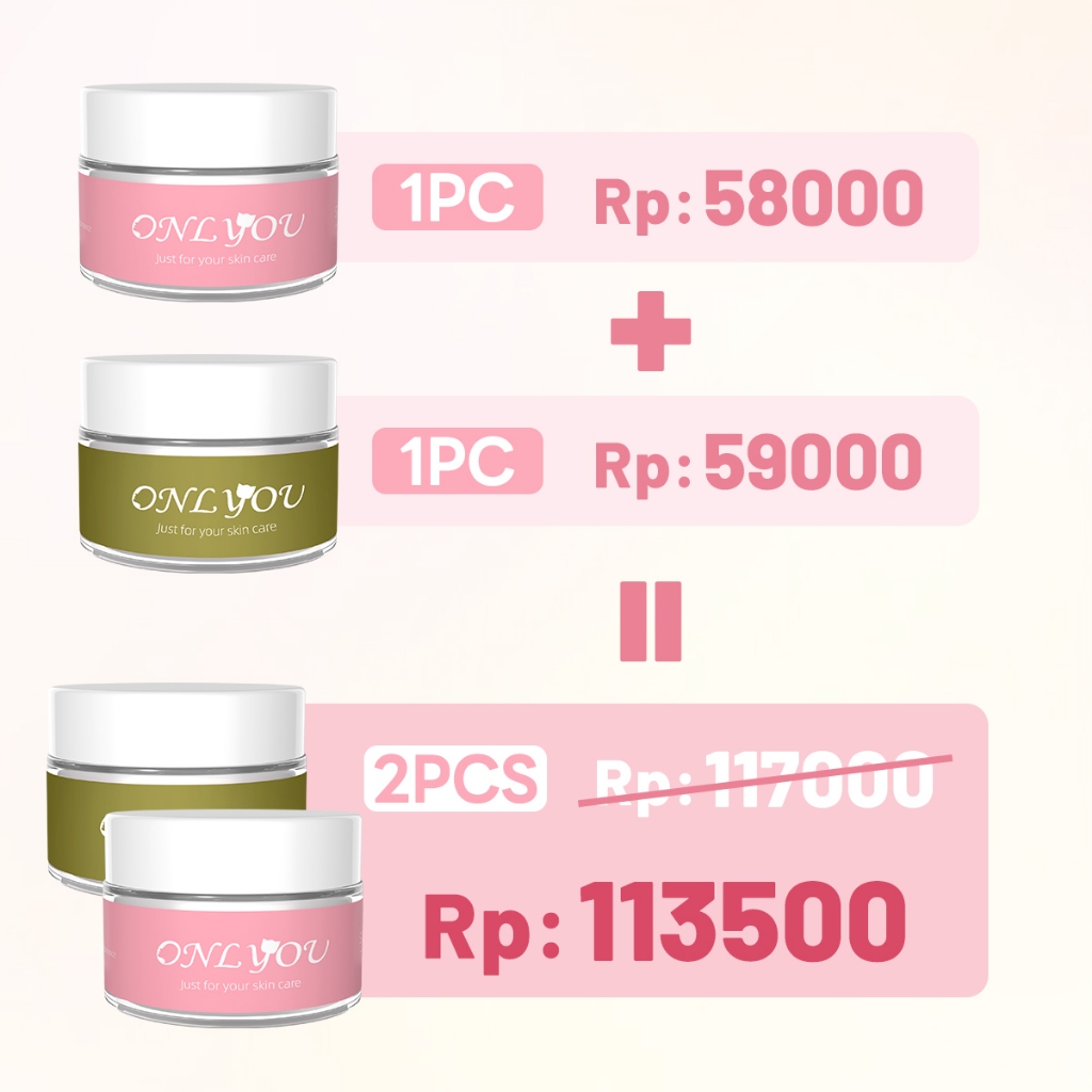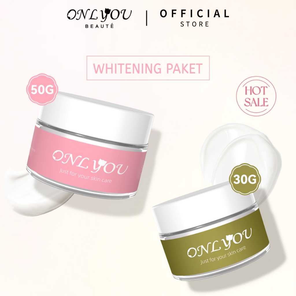 Onlyou Whitening Essence Cream 30G & Tone Up Cream 50G Instant Brightening Pagi Malam