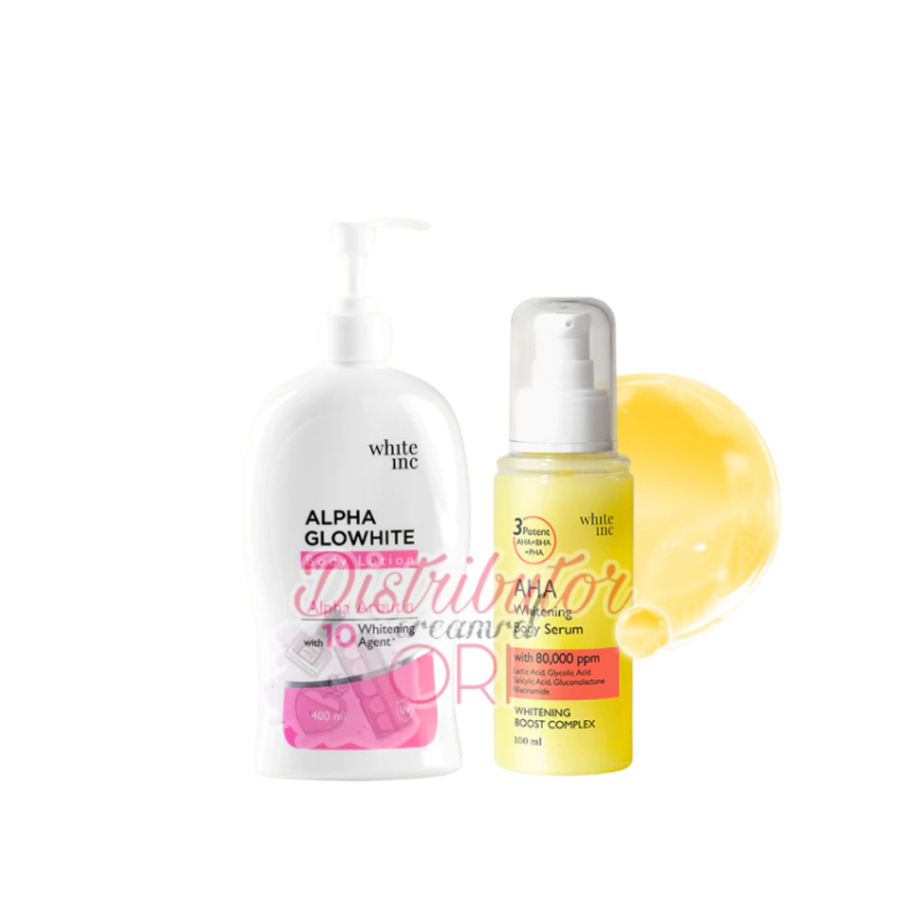 White Inc AHA Body Serum 100ml + Alpha Glowhite Body Lotion Whitening & Moisturizing 400ml BPOM