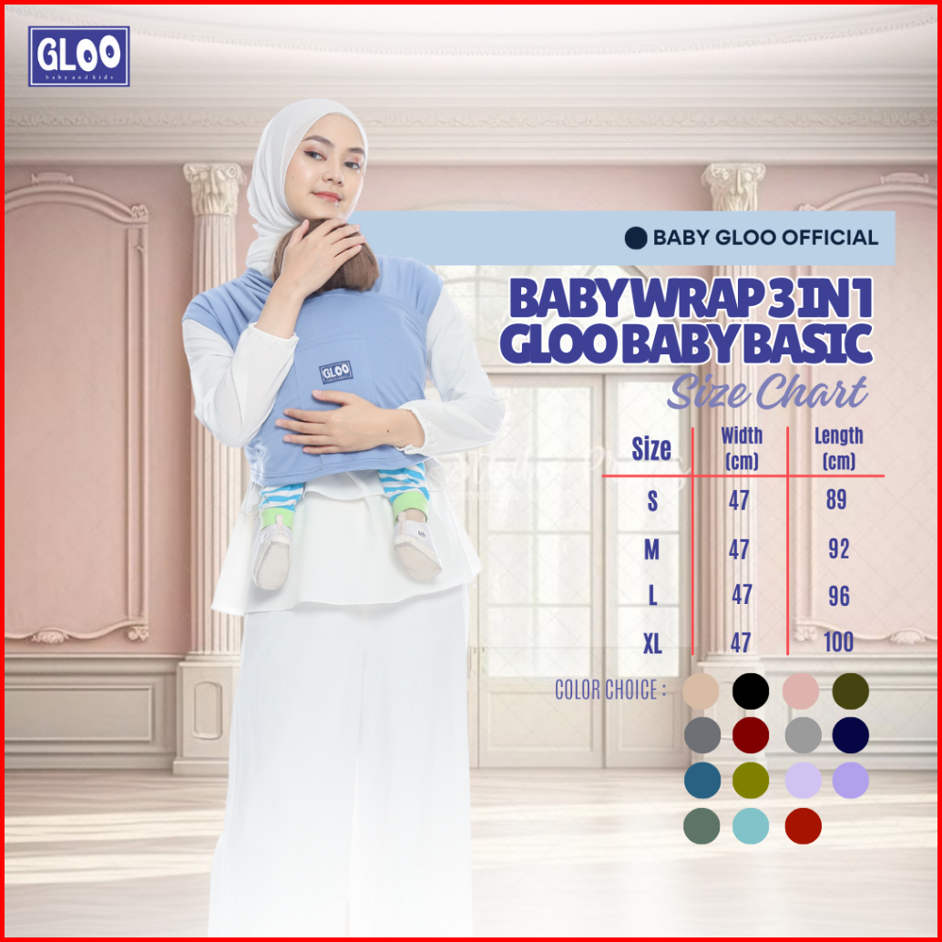 Gendongan Bayi Depan M Shape Baby Wrap 3in1 Geos Baby Premium With Sash Belt Gloo