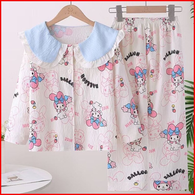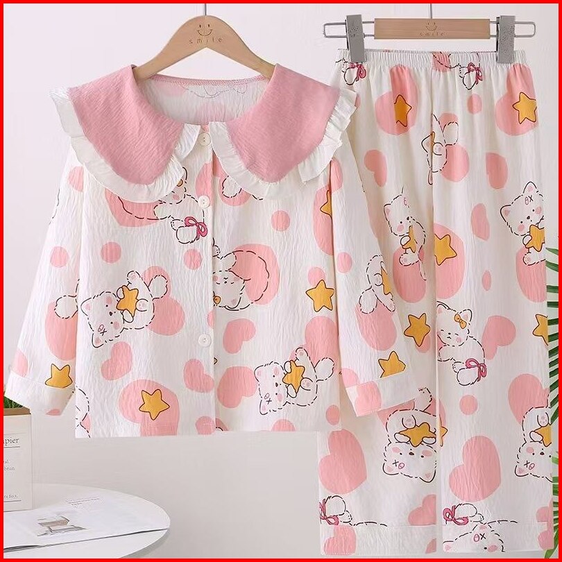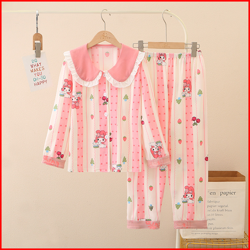 Lp04 Setelan Baju Tidur Piyama Import Anak Perempuan Lengan Celana Panjang Milk Silk