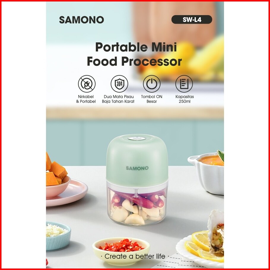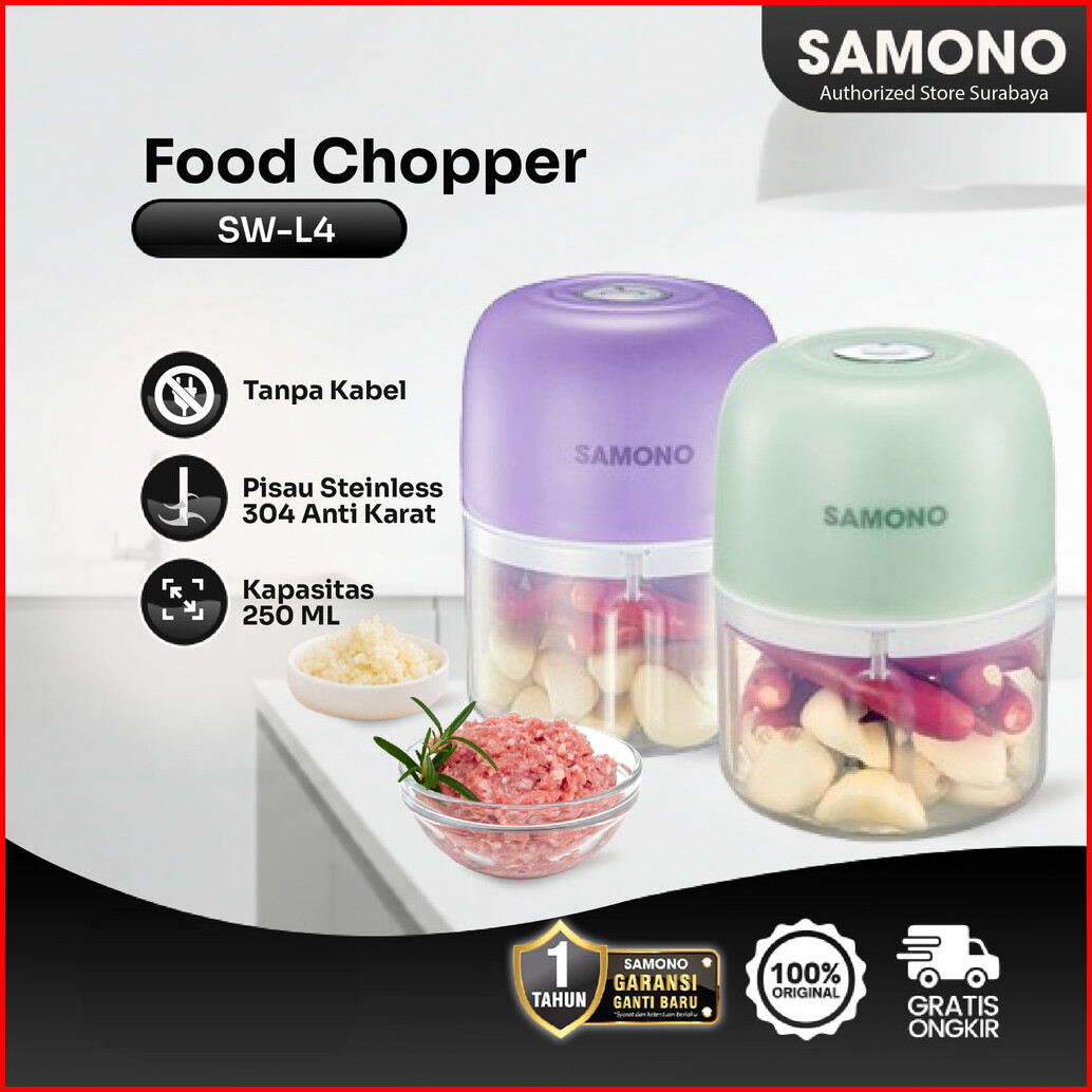 Samono Portable Chopper Tanpa Kabel 250ml Type C Charging Penggiling Bumbu Mpasi Garansi 1 Tahun Sw-l4