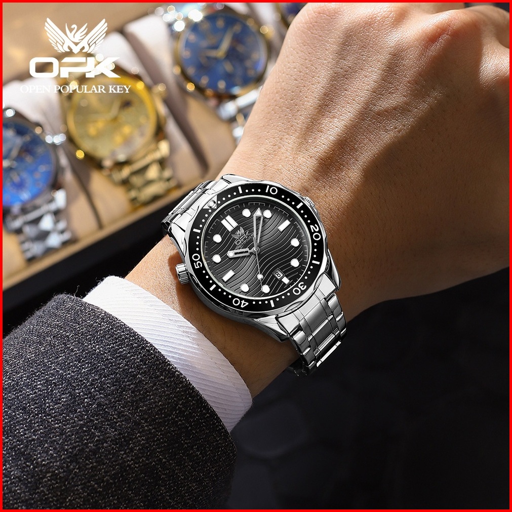 Opk Jam Tangan Pria Original Anti Air Analog Cowok Bisnis Kuarsa Waterproof Genuine Hitam Stainless Steel Men Watch Mode