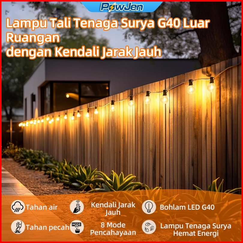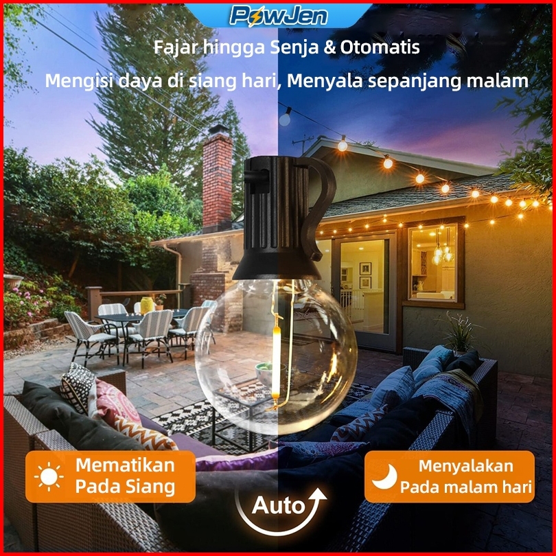 20 Bohlam Led 10 Meter Tenaga Surya Panel Fitting Lampu Gantung Outdoor Matahari Tahan Air Cafe