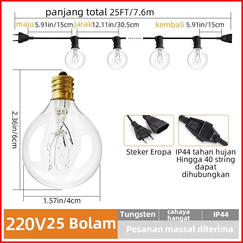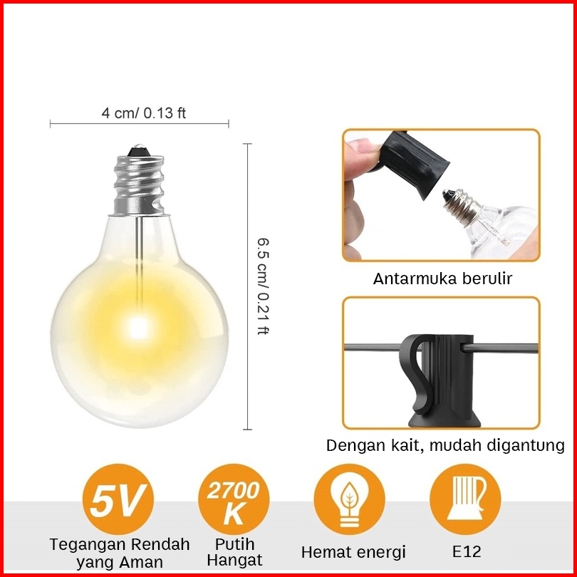 Qimedo Lampu Led Outdoor 50 Bohlam 15 Meter Kabel Fitting Lampu Cafe Komplit 11 Watt