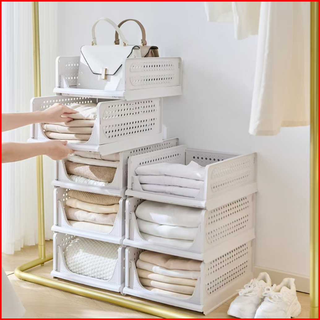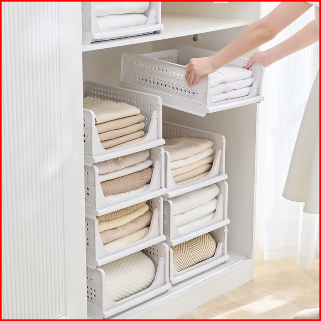 99khome Thick Rak Laci Lipat Serbaguna Rak Baju Putih Tarik Tempat Penyimpanan Pakaian Susun Plastik K1149