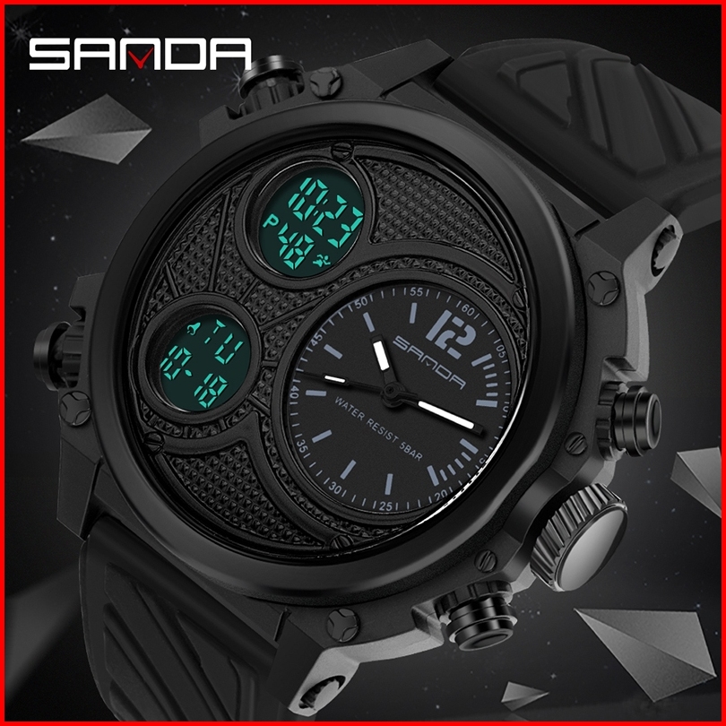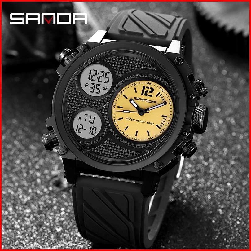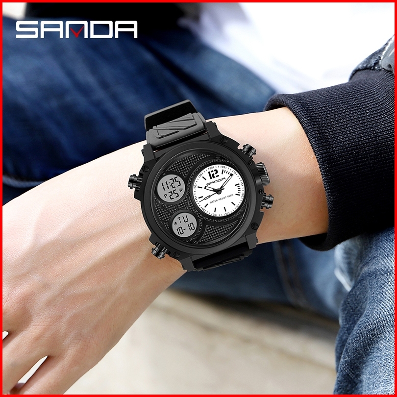 Sanda 3002 Jam Tangan Pria Bermerek Mewah Fashion Multifungsi Tampilan Ganda Olahraga Tahan Air Digital