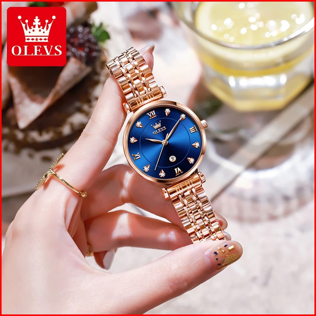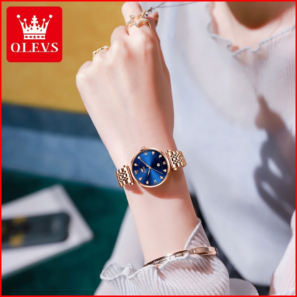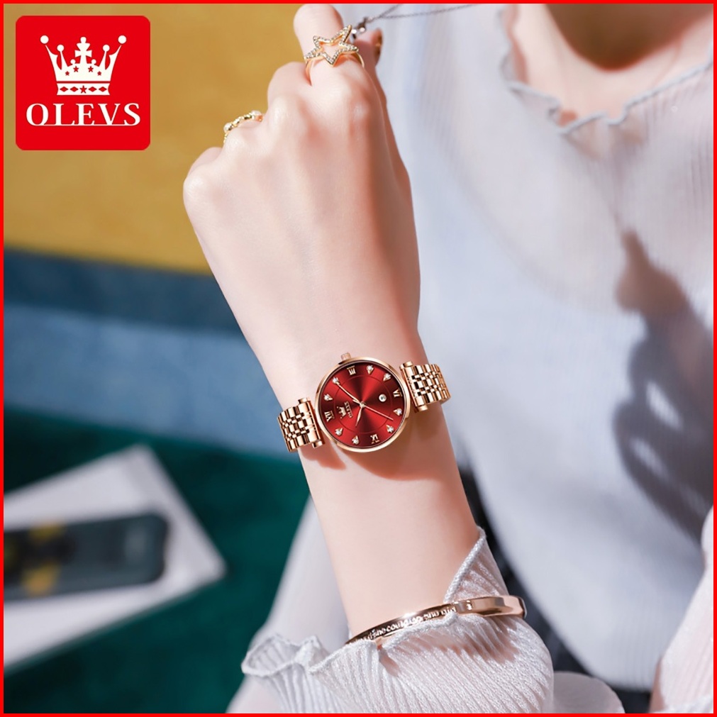 Olevs Jam Tangan Wanita Anti Air Original Elegan Tahan Branded Kalender Analog Rose Women Watch 5866