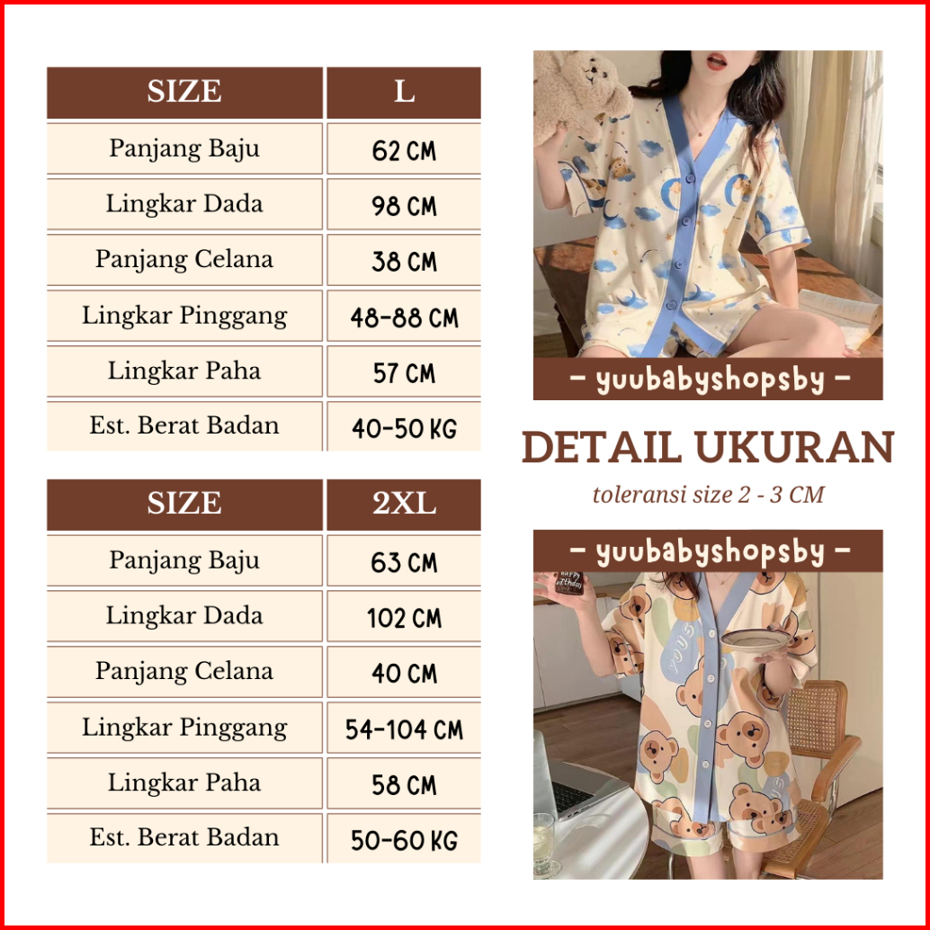 Ybss Setelan Piyama Wanita Set Baju Tidur Perempuan Dewasa Motif Karakter Animasi Lucu Bahan Kaos Lembut Adem Serap Keri