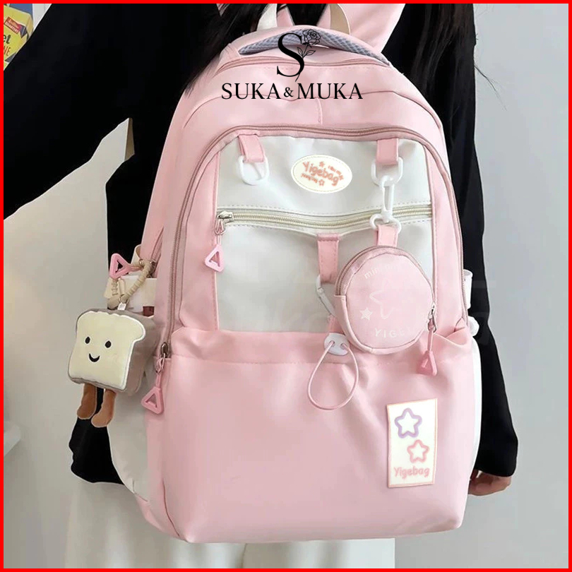 Tas Ransel Sekolah Big Size 31x43x18cm - Backpack Wanita Lucu Korean Style Muat Laptop 14 Inch Buku Tebal Anti Air Nyama