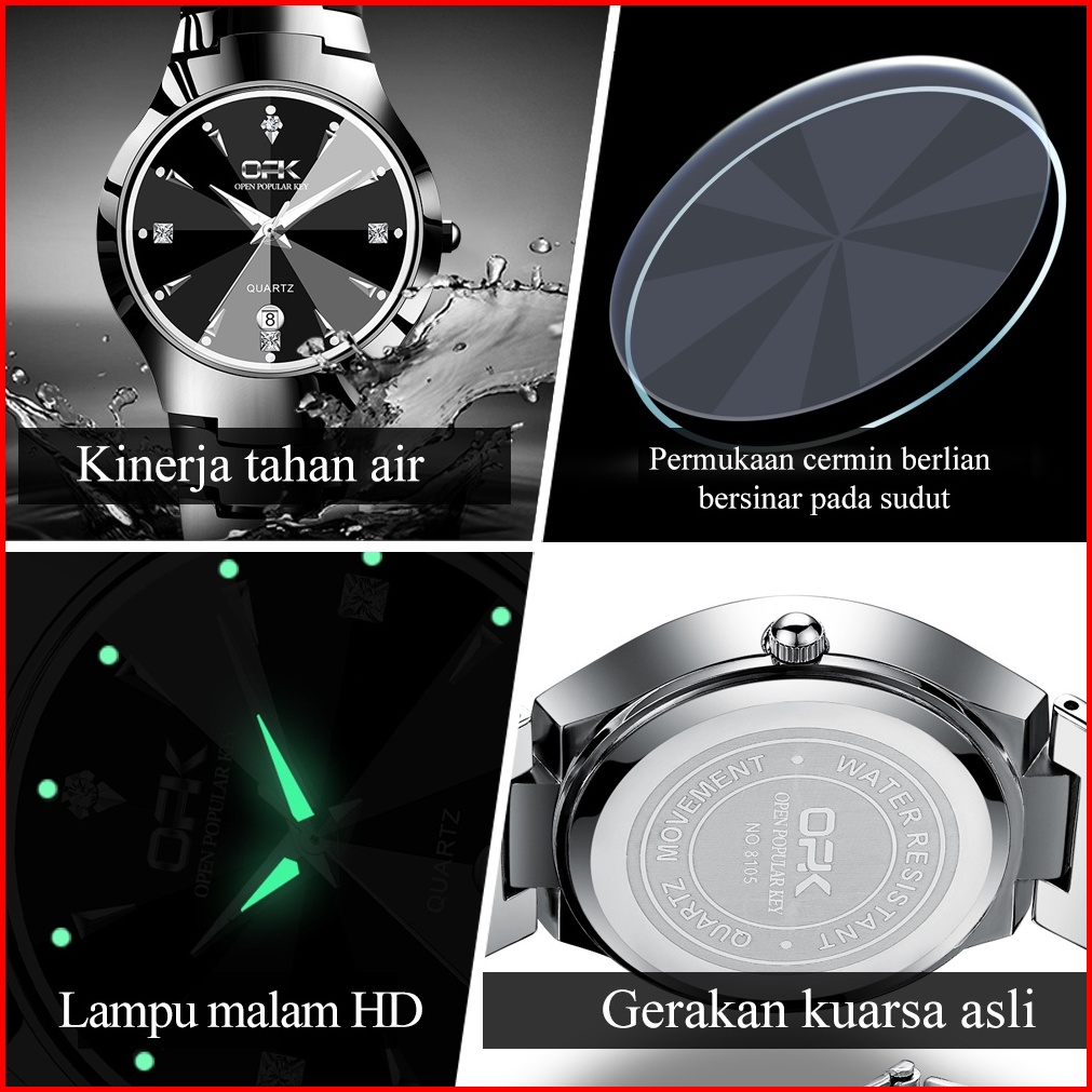 Opk Jam Tangan Couple Anti Air Original 100 Analog Korea Kecil Rantai Stainless Steel Kalender Casual Aesthetic Hitam Ce